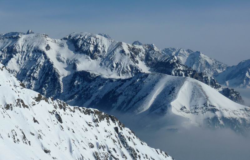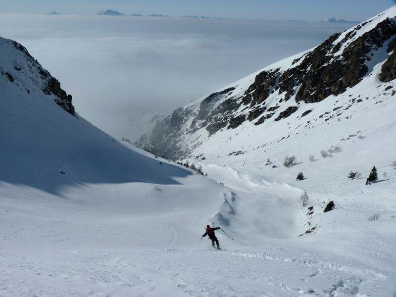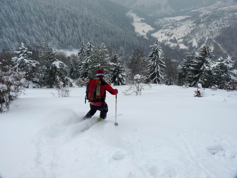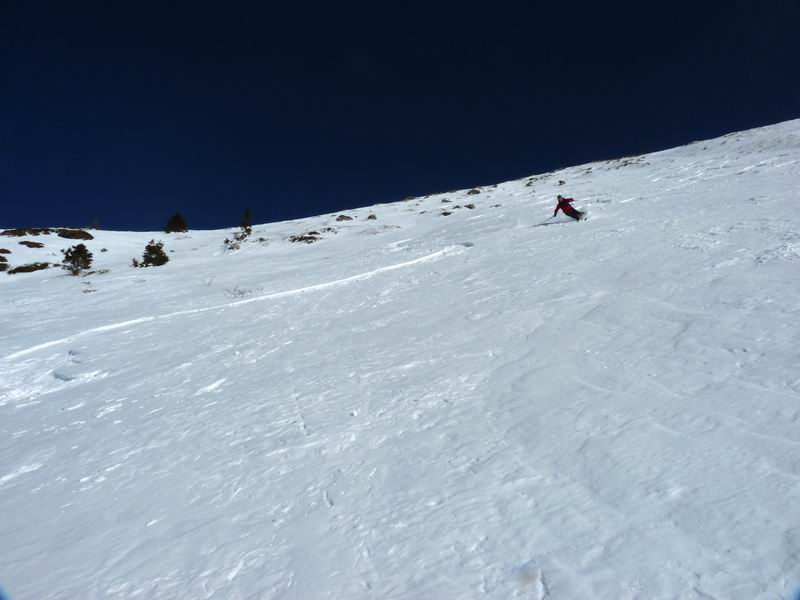 En partie basse, poudre fabuleuse avec 20 à 30 de faces planes recouverts de 5cm de duvet de la nuit. Les versants nord et ouest de la cavale sont aussi en poudre, un poil plus dense