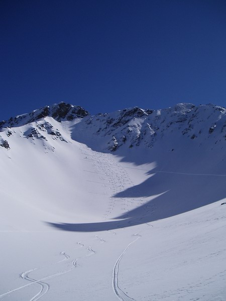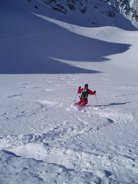 Montée tranquille facilitée par la belle trace faite la veille (merci à eux). Du très bon ski à la descente, où les 2 traces de la veille nous laissaient beaucoup de place. Ce coin est vraiment grandiose et offre de nombreuse possibilités. En plus l?accès même si il est bas en altitude est vraiment aisé et bien enneigé.