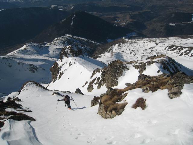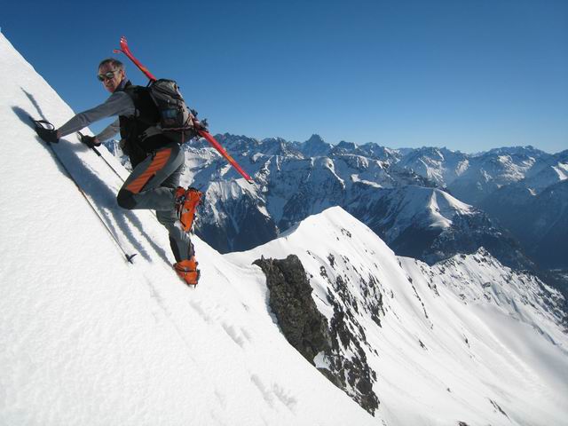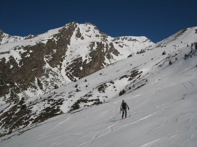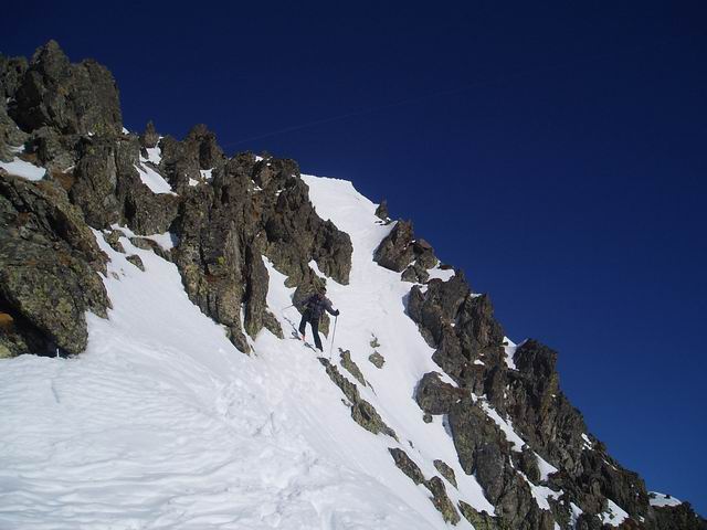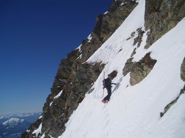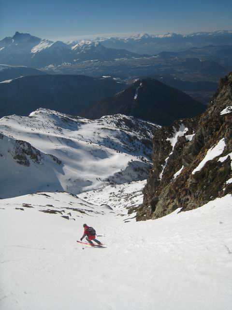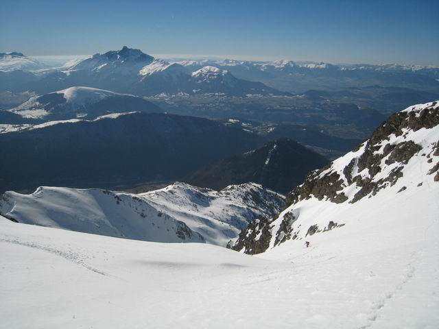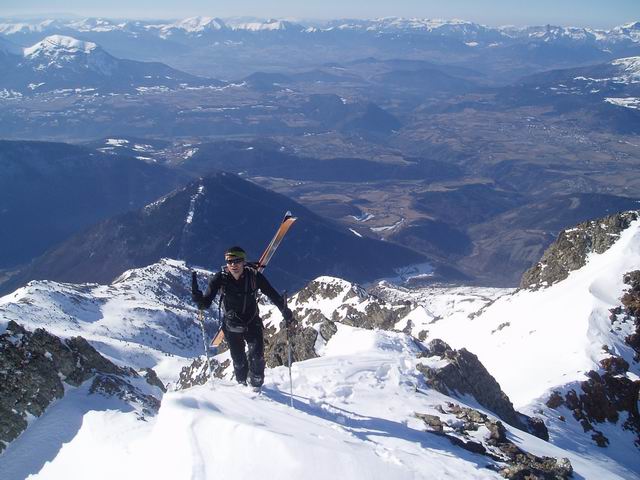 Au dessus de 2300m, c'est pas encore tranfo même dans les orientations plein sud, sauf dans le très raide (les 50m à 45° juste sous le sommet très bons). A la montée, bref passage en versant nw de l'arête, c'est du bon grain fin. En Ouest c'est crouté. Enfin nous avons trouvé de la vieille poudre vers 1300m le long de la forêt du Roussillon => la pluie n'est pas venue jusqu'ici