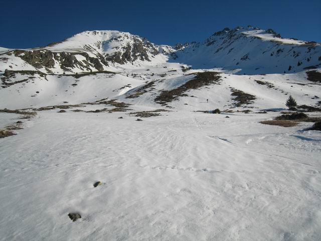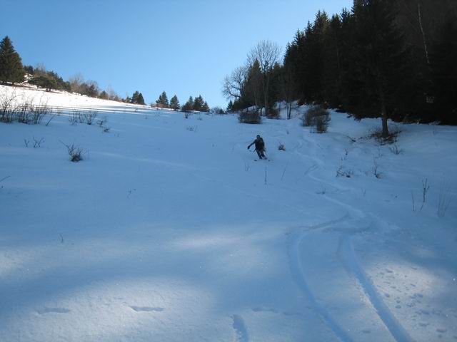 La montée par le Jas n'était à priori pas la meilleure option quand on a vu l'affluence et qu'on s'est rendu compte que la neige était bien remontée sur ce versant. Mais finalement, arrivés à la Baraque, nous nous sommes retrouvés seuls pendant que toute la procession filait vers la Grisonnière. De plus, ça nous a permis de réaliser une boucle intégrale, par un itinéraire ma foi bien sympatique, et surtout en arrivant ski aux pied à la voiture