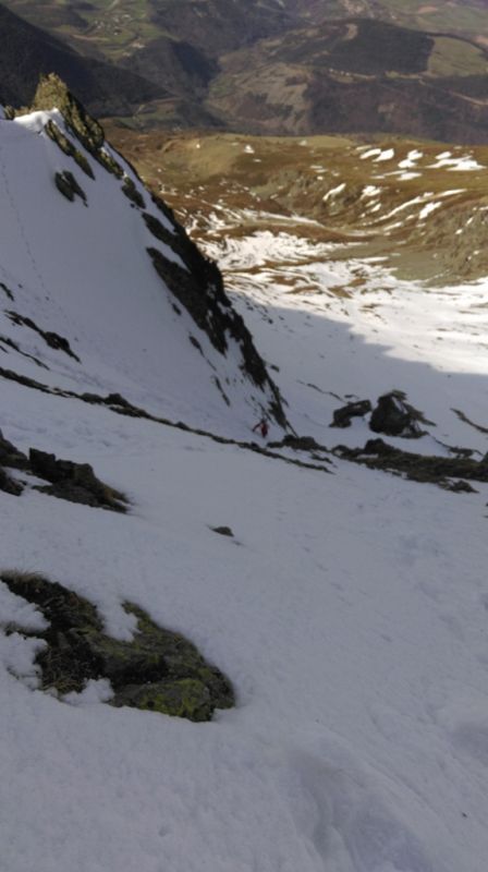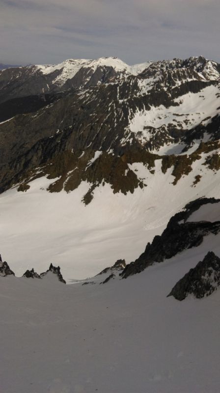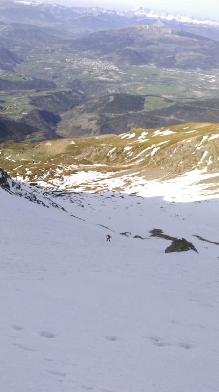 Il reste de la neige en Matheysine, il suffit d'aller la chercher... . Bon il en reste pas beaucoup car le couloir au dessus du rocher Jumeau est très étroit (2m max)alors que normalement c'est plus large. La descente versant N est bonne sur 200m, ensuite la neige est croutée. On est descendu à 12h, bien trop tôt mais le vent ne nous a pas permis d'attendre. La neige dure nous a demandé de l'attention car irrégulière dans le petit couloir à cause d'une ancienne coulée. Ensuite c'est tout bon. Peut être la dernière en Matheysine?