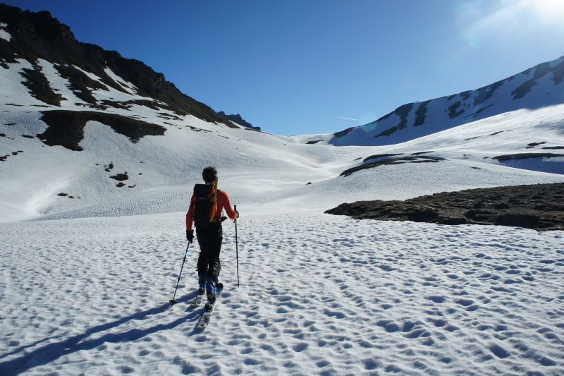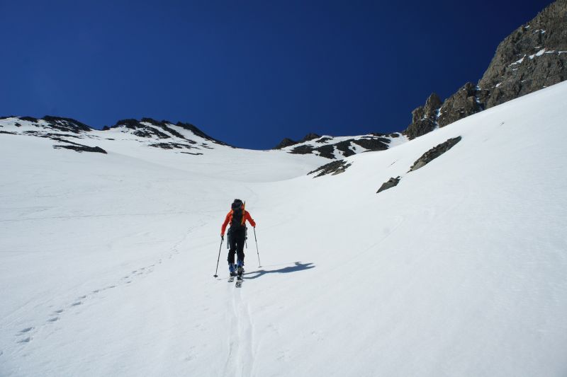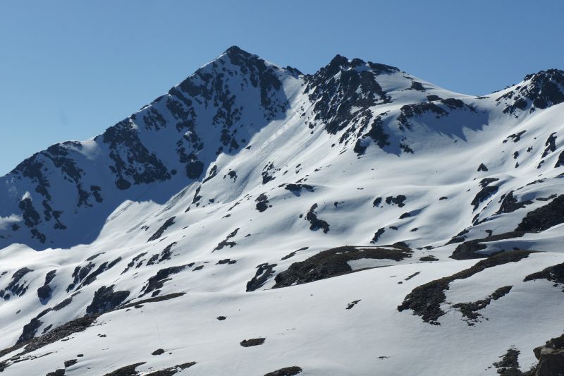 Une belle journée de fin de saison malgré une neige qui a bien du mal à transformer à notre grand surprise. En effet, il s'agit d'une neige de névé compacte, et les nuits sont encore bien froides. Seul portage: pour remonter sur la crête côté italien (200m sur un D+ total de 1170m)
