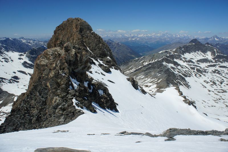 Col Vieux - Brèche de la Ruine - Col Asti - Descente côté Piémont jusque vers 2650m alt. Remontée crête (à pied) - contournement Pain de Sucre pour Rocca Rossa