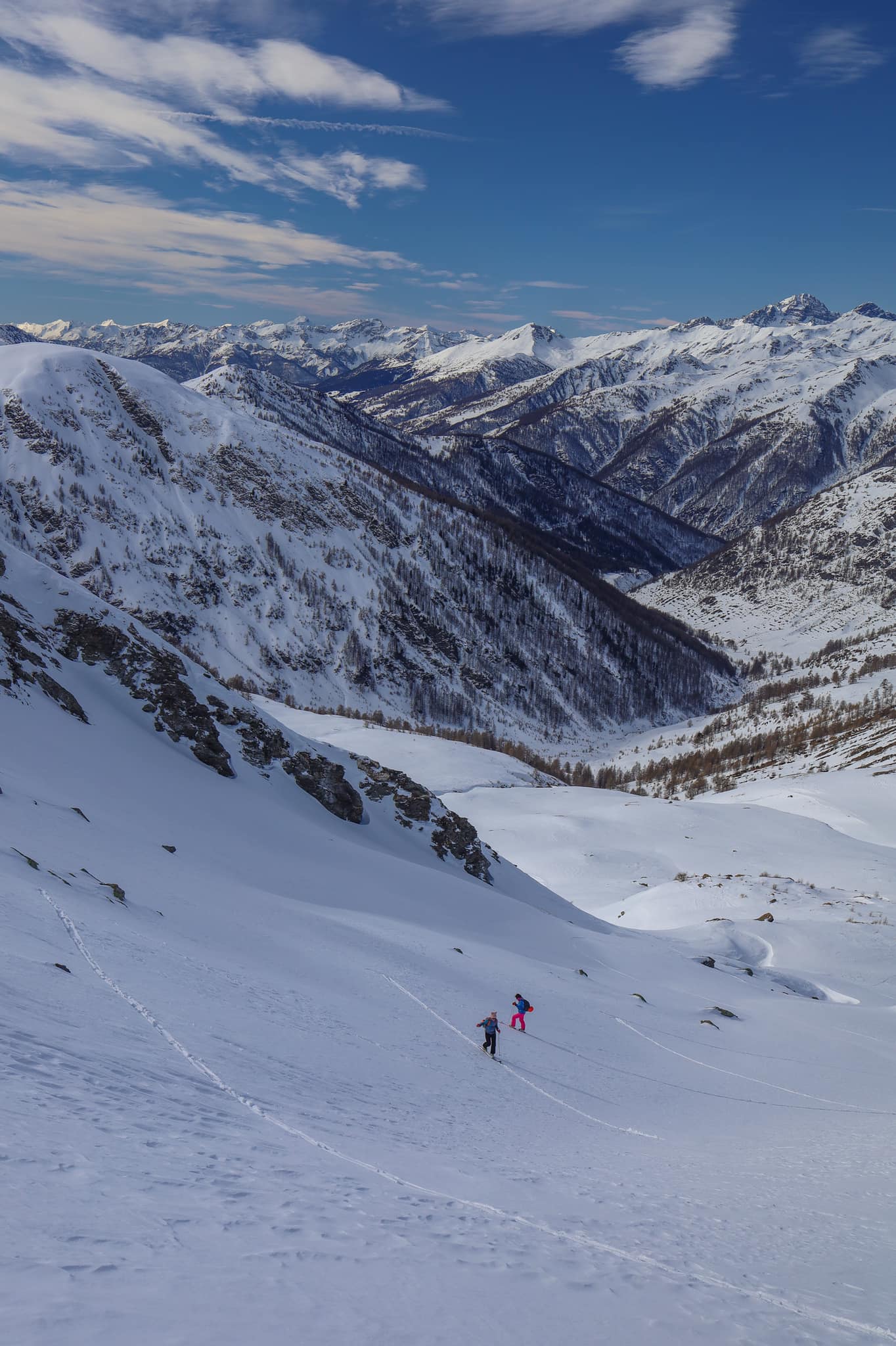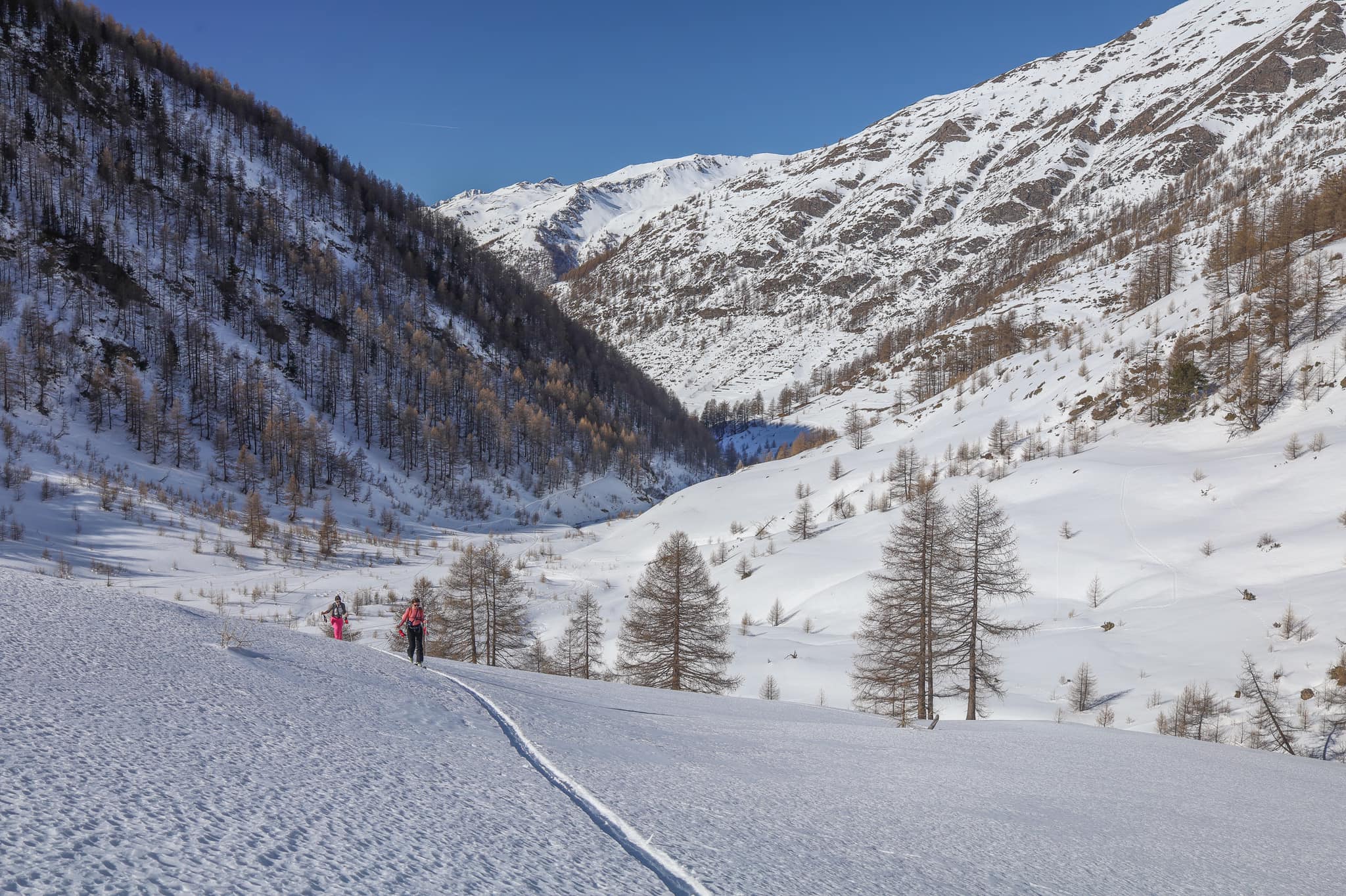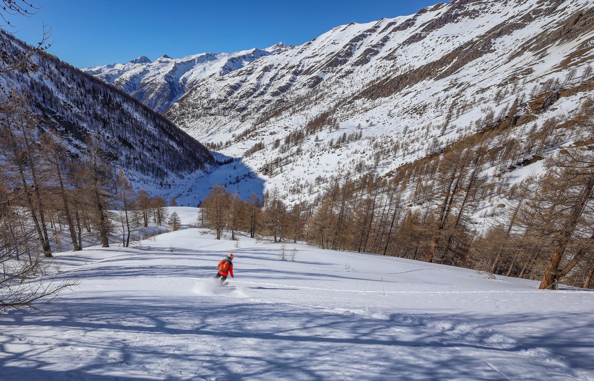 Fantastique par la qualité de la neige et la lumière. Pas âme qui vive alors que c'est presque (pour la Queyras hein !) la cohue à l'Eypiol !