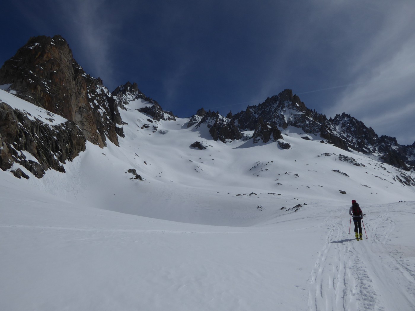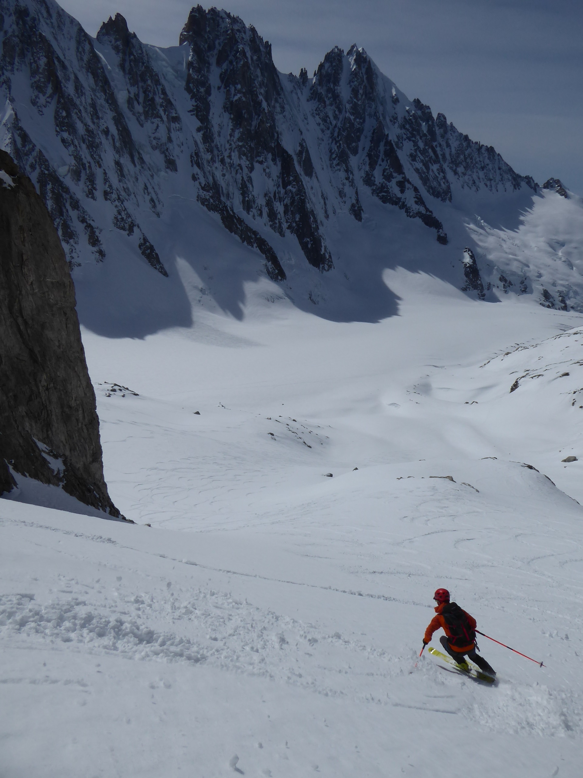 Bon ski malgré les températures élevées. Beaucoup de monde dans le bassin d'Argentière (col du Tour Noir, d'Argentière, du Chardonnet, du Passon, du Milieu). NE des Courtes et Cristaux tracés ainsi que la NE de l'Amône. Ticket randonneur pour Bochard 33€.