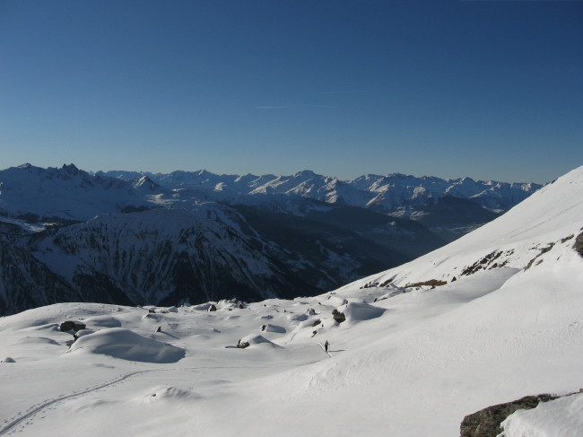 Sortie de décrassage après le réveillon. Après un départ difficile avec pour objectif de s'arrêter sous la table ronde, nous avons poussé en direction du col. Bon ski quoique physique par endroits: il faut bien choisir ses zones de descente sous peine de se retrouver dans de la croute transfo. Encore de belles lumières pour commencer cette nouvelle année.