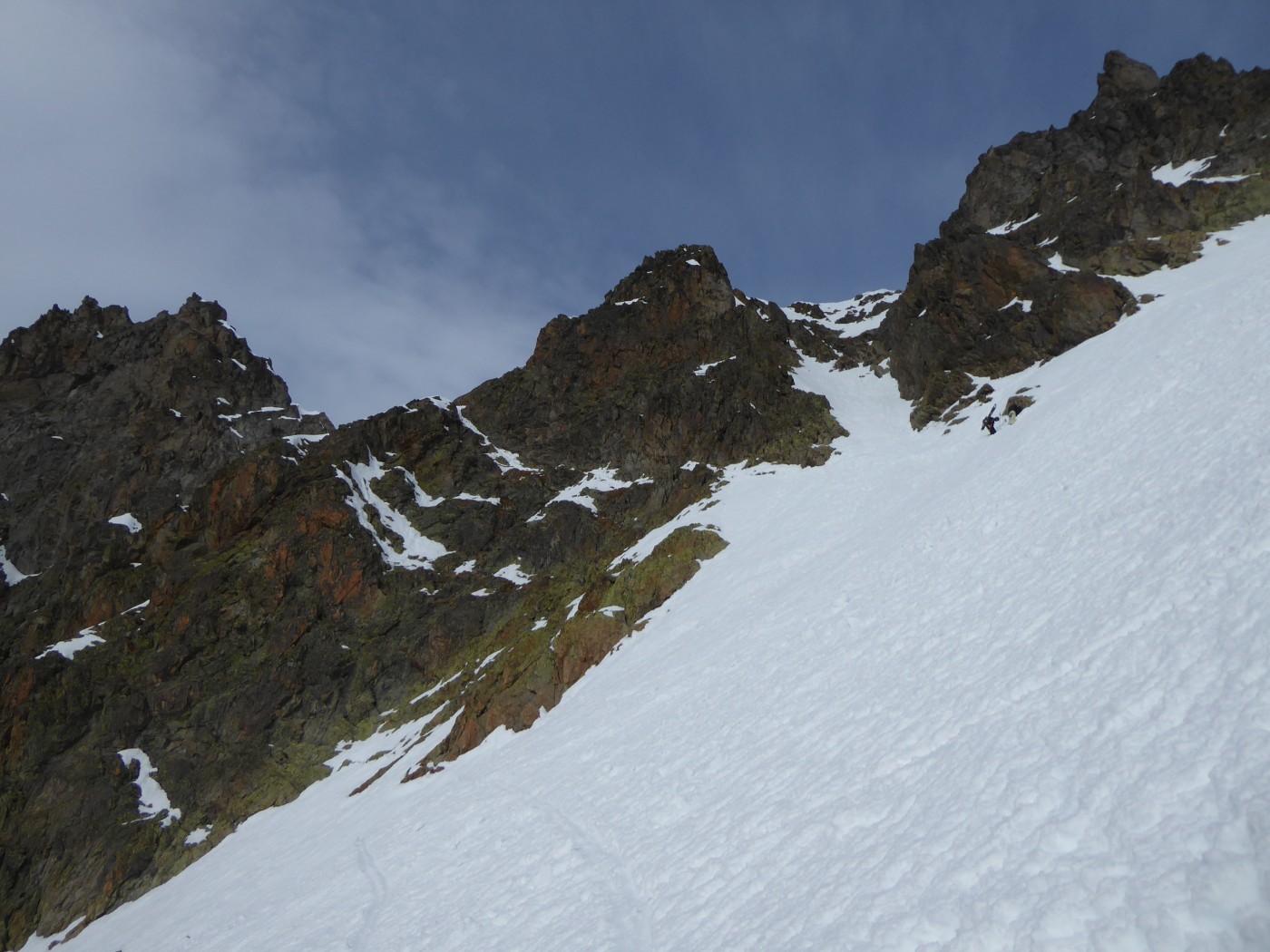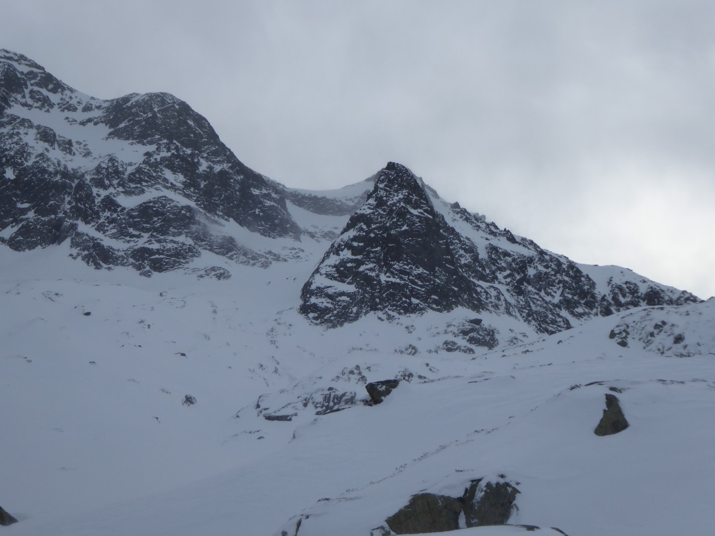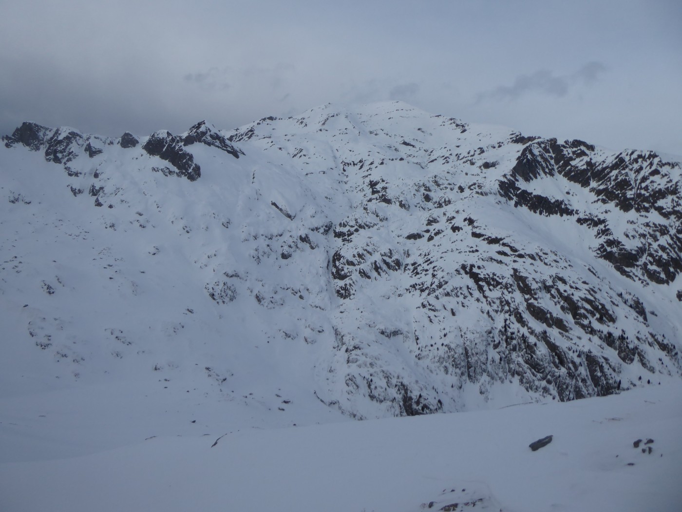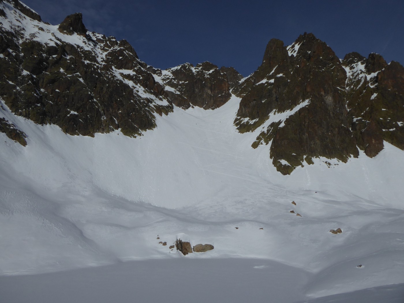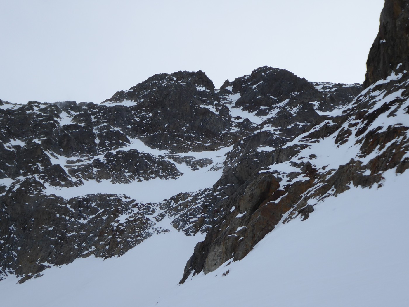 Neige dure, croutée à gelée souvent assez sculptée dans les pentes sud (ça ne devait pas être agréable à skier). Dans les pentes nord, elle est soufflée croutée à dure, parfois encore un peu de poudreuse dans les pentes abritées du vent. Assez agréable à skier sans plus. Pas de signe d'instabilité sur l'itinéraire suivi.