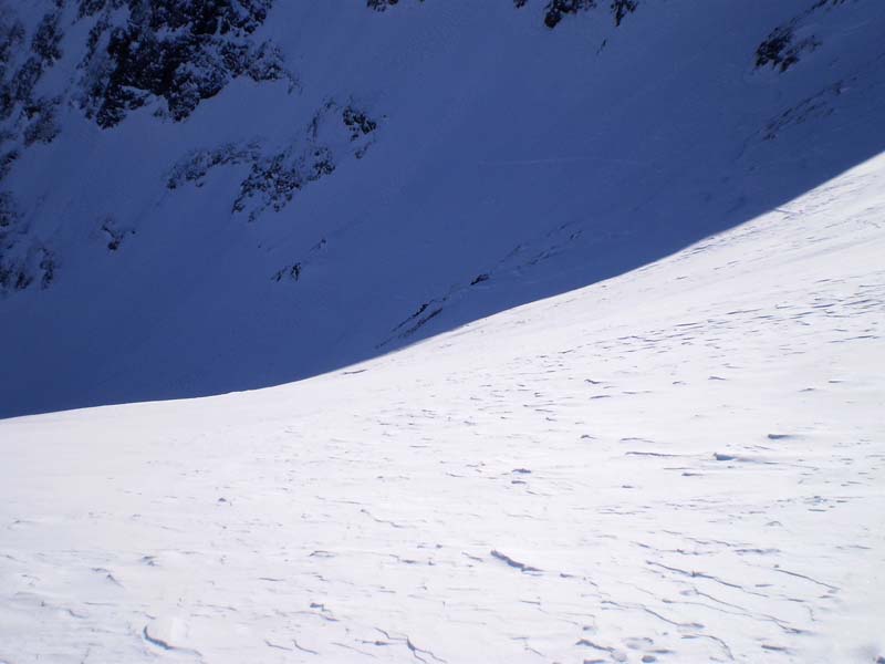 2200 / couloir est 100 40 20 cm poudreuse sur 20 cm grains fins liés sur ferme