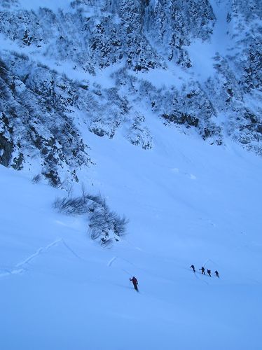 C'est l'hiver au Gleyzin avec des températures polaires tout le long de cette longue journée. Enneigement conséquent mais pour la Pointe de Comberousse ou les Grandes Lanches il faudra attendre. Les piliers de la Porte d'Elise ont l'air plus gâté. Déchaussage à la descente vers 1450 sur 200m... Nous on s'est garé en épi!