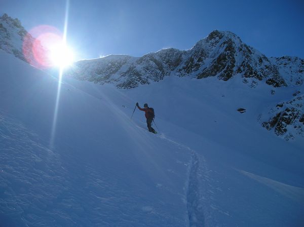 Montée au col de Comberousse. Descente jusqu'au replat à 2150 pour profiter de la poudre. Remontée au Col de Clarant.