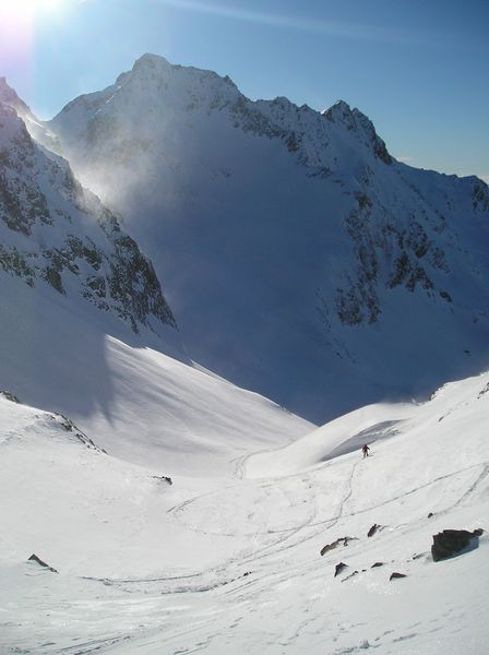C'est bien tombé par ici. Dans le bas ça ne recouvre que les cailloux, en haut beaucoup de bonheur à skier enfin dans la poudre. Celle-ci est excellente de 2300/2400 à 200m sous le refuge. Au-dessus de cette altitude le vent a travaillé la neige en surface formant une légère croûte de surface et occasionnant pas mal de chutes intempestives! Quelques petites plaques aux ruptures de pente. Aux abords des cols et crêtes, c'est de la glace.