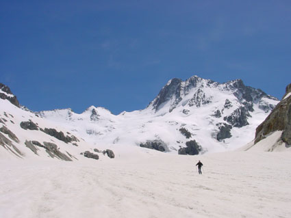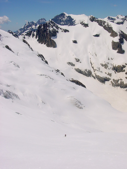 Epilogue d'une course commencée par 111, improvisation totale, aucune logique de circuit, mais des conditions de ski frolant la perfection sur Ecrins nord comme sur Ecrins sud. Pas vu de skieurs mais pas mal de piétons-alpinistes.