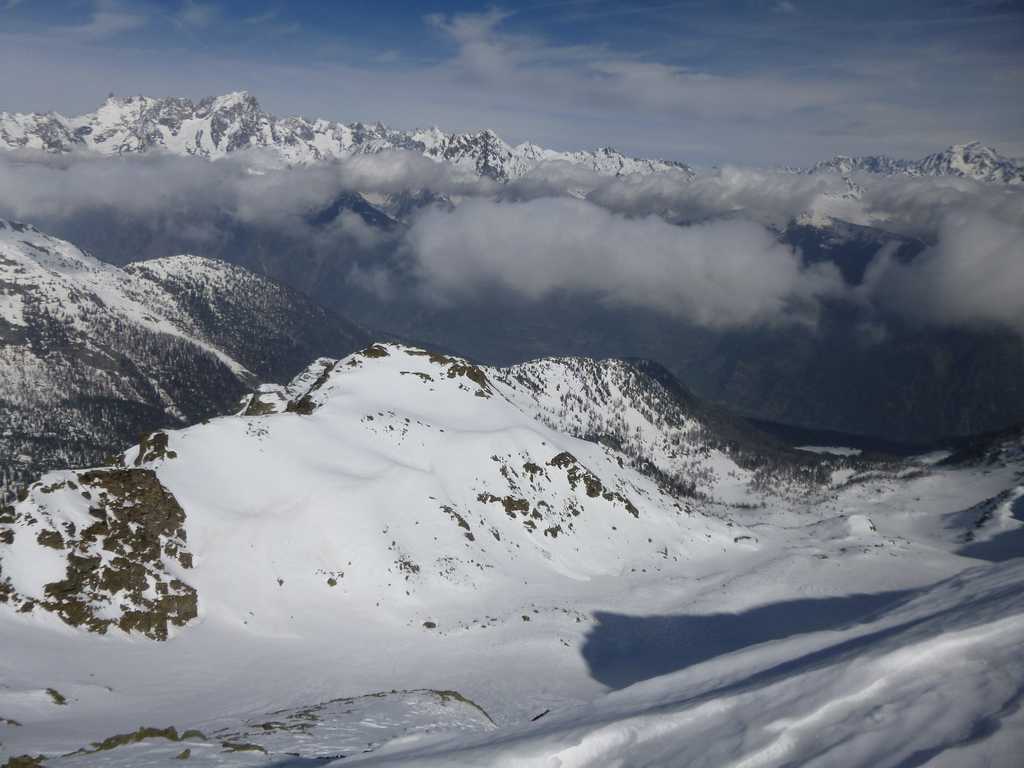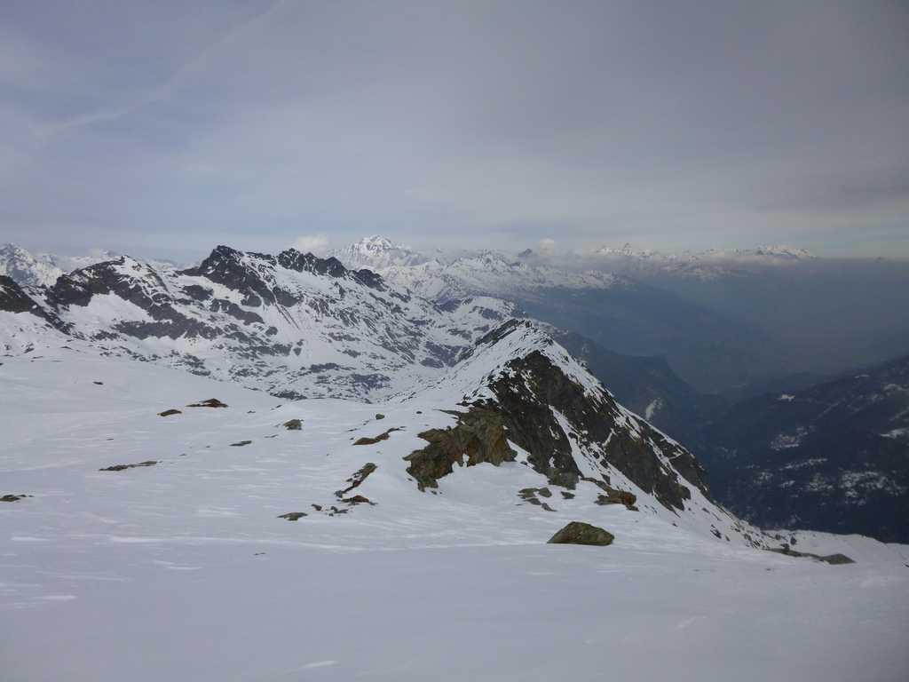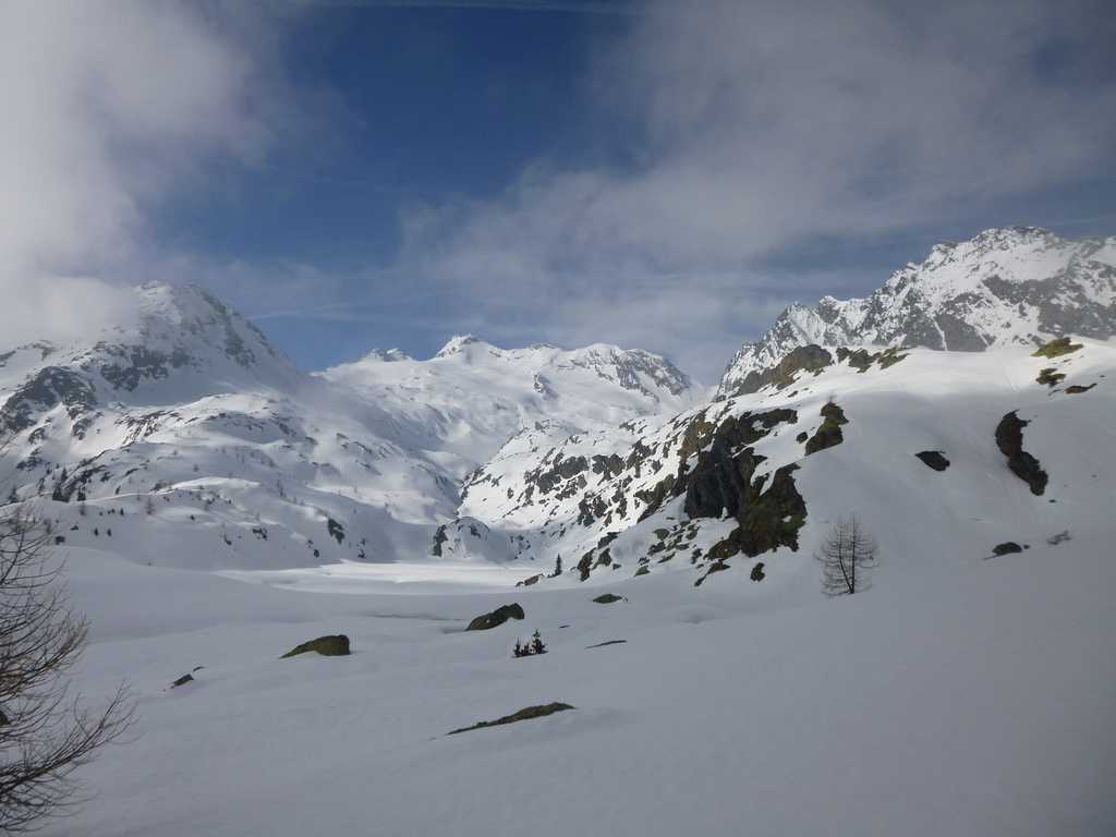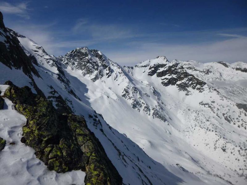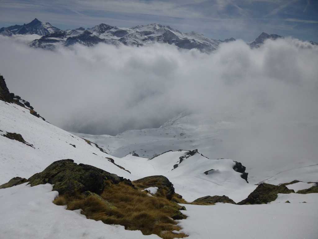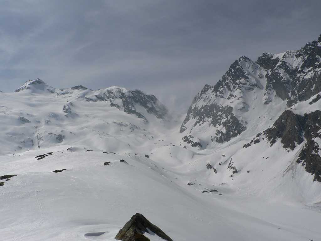 LA Clusaz, Benevy par le sentier, Glacier, col de la Crosatie par les pentes sud sous la becca Tailla. Descente jusque 2300m. Remontée du vallon de Fond jusque 2875 m pour contourner le mont Orfeuille. Descente par le vallon d'Orfeuille sur Planaval.
