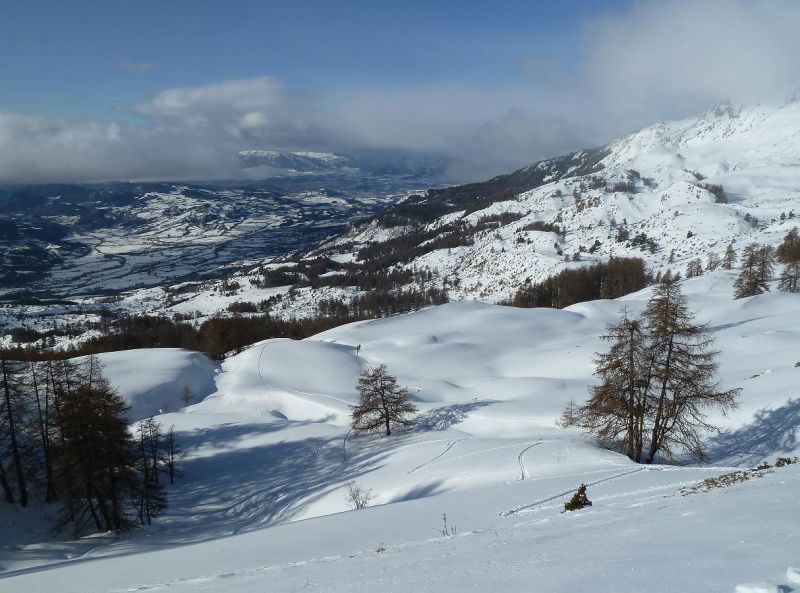 Conditions météo et glisse agréables sous le soleil Haut-Alpin dans ce secteur panoramique idéal pour les balades en raquettes, luge ou ski.