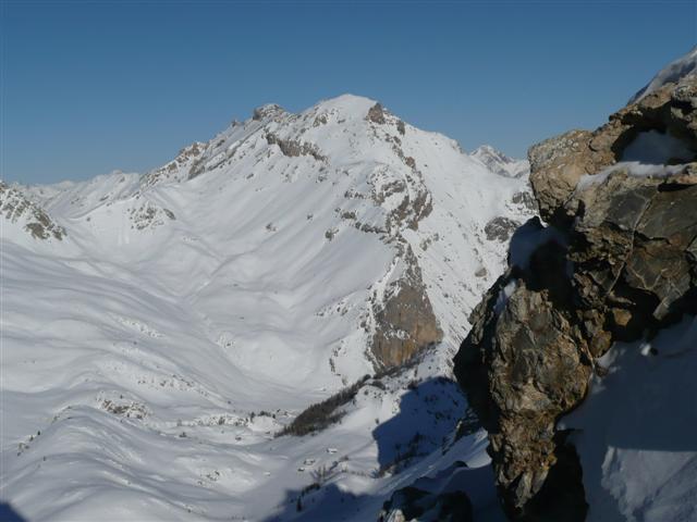 Après un rapide détour par Ristolas pour constater que la plupart des pentes du secteur sont soufflées et dégarnies,nous allons au Coin d'Arvieux pour remonter le vallon de Combe Bonne.Celui-çi est bien enneigé et poudreux,le vent de Nord l'a bien garni.Dès que le vallon s'élargit,au sortir de la forêt,la qualité de neige est inégale jusqu'à la mi-pente Sud en direction du Pic du Cros(dont la face Ouest est soufflé)qui était en fait l'objectif du jour.Changement de cap et direction sud Est vers le col de la Mayt à droite du Pic de la Rousse.La pente (sous le vent) est bien remplie,la répartition de la neige est inégale mais saine.Vers 2350 ,on sent bien une sous -couche dure sous les 20 à 30 cm de poudre froide qui va progessivement s'humidifier et s'alourdir vers la sortie confortable au col,tout en restant bien skiable.