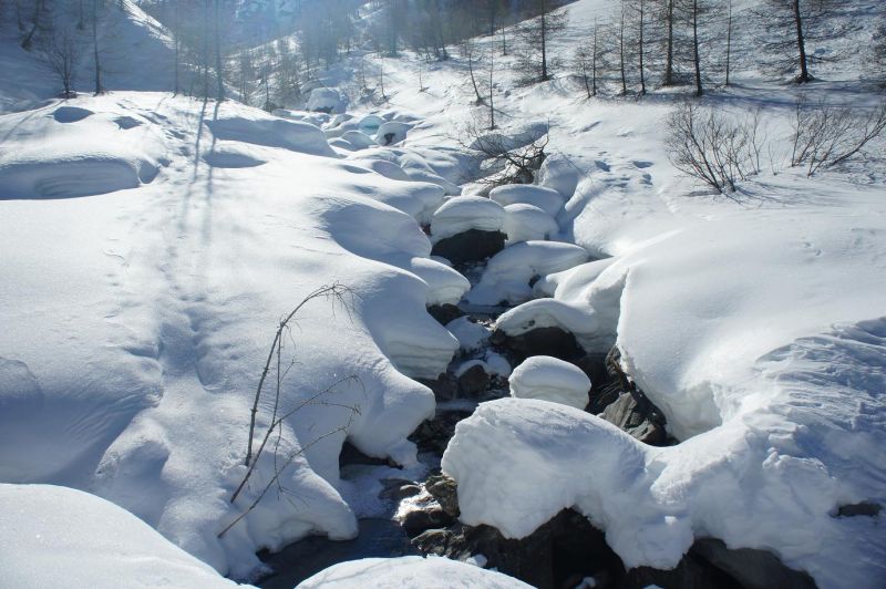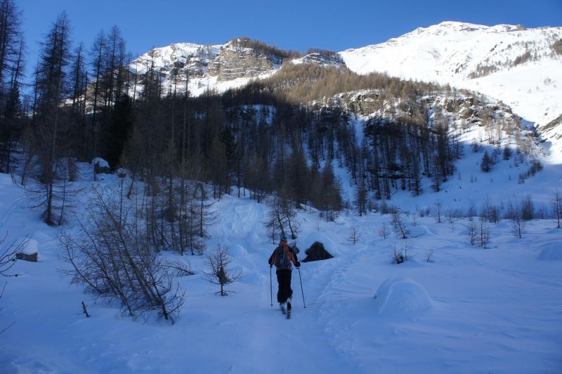 Pour ma part, la sortie s'arrêtera au col, car les couteaux sont restés à la maison, et c'est indispensable entre le col et la Coupa, qui était l'objectif du jour. La neige dure ou croûtée jusqu'à la cabane offre un ski médiocre mais le plaisir d'être à la montagne au soleil... Entre la cabane et Archinard, grosse trace damée, donc descente très rapide en forêt.