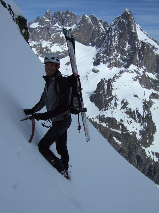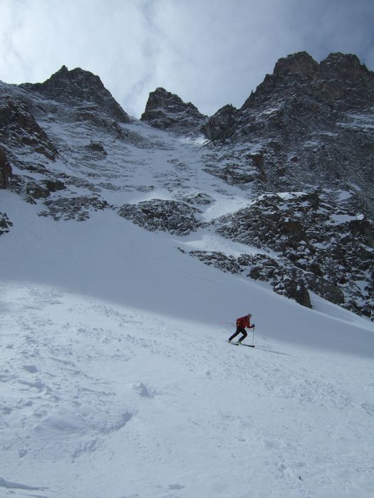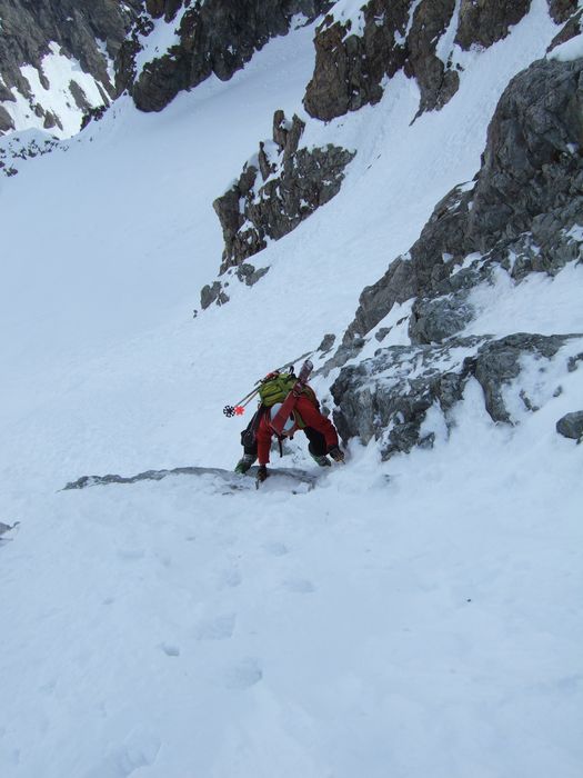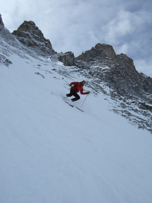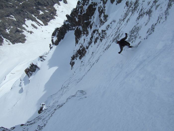 Nous avons skié intégralement le couloir N, seulement 3 courts passages de gratonnage, chose que nous ne pensions pas en montant.