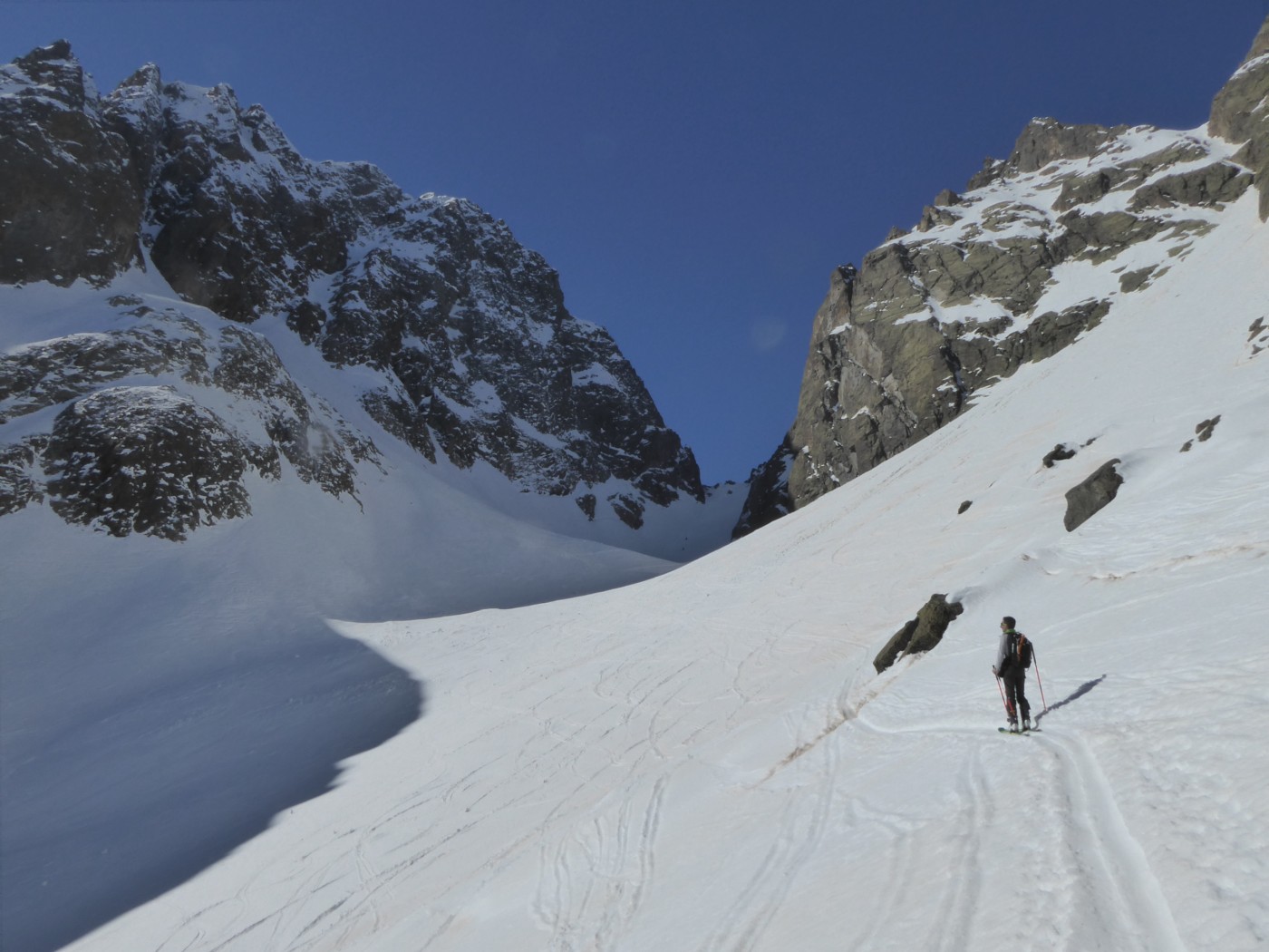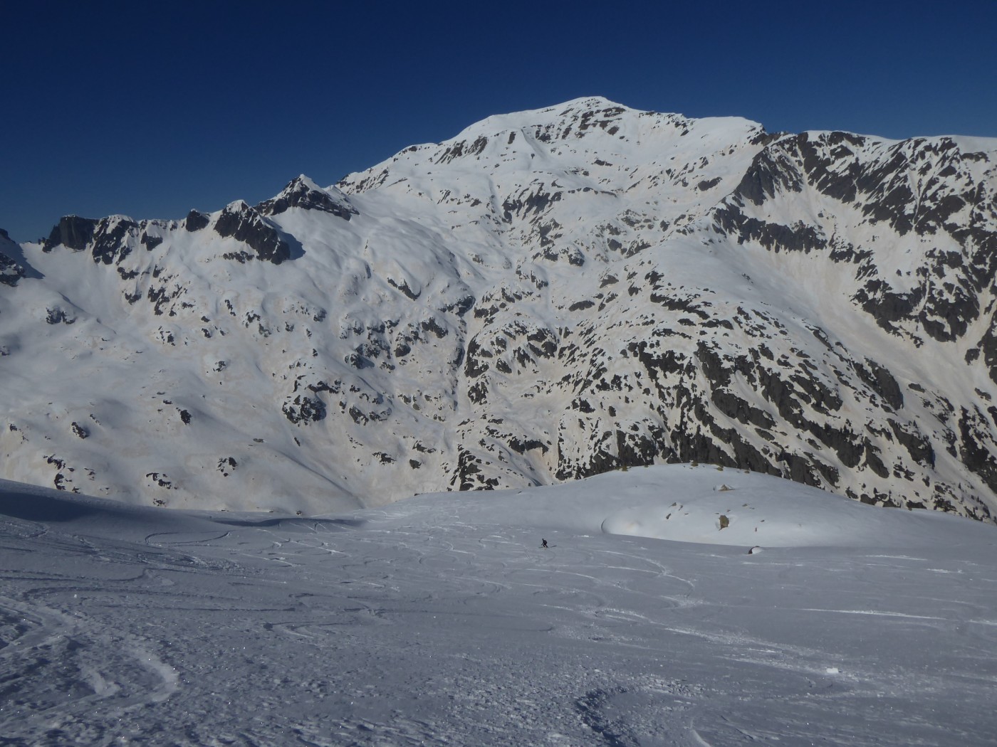 Pas mal de monde dans la montée au col de l'Encrenaz moins dans le haut du vallon de Bérard. Le bas est plus fréquenté et en neige dure. Quelques cailloux en-dessous de la buvette de Bérard.