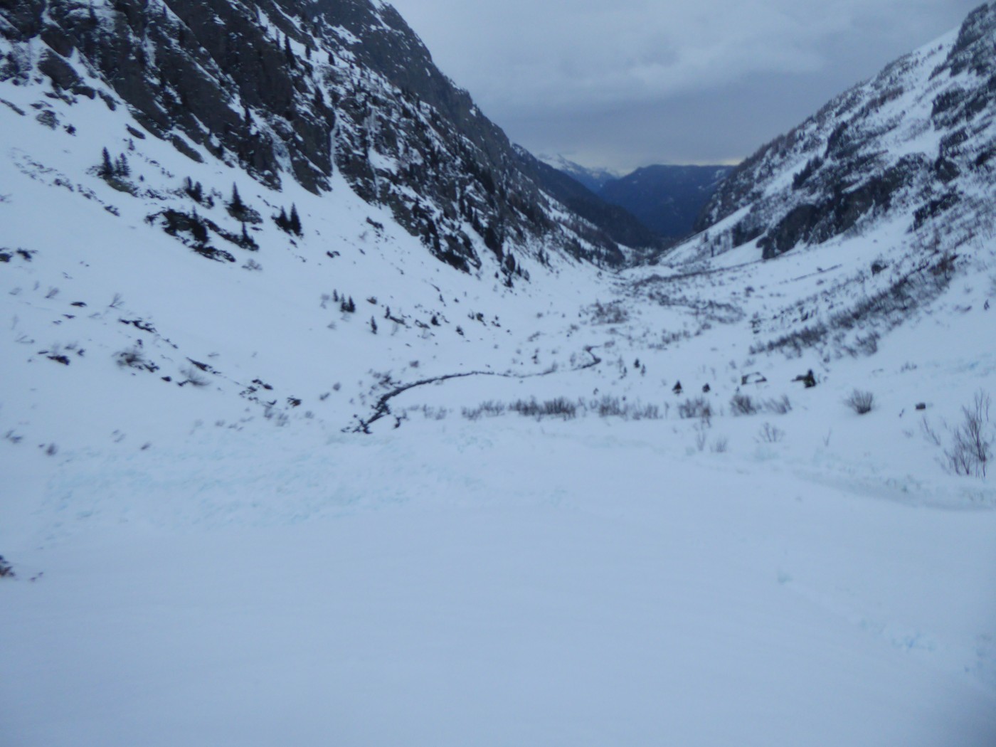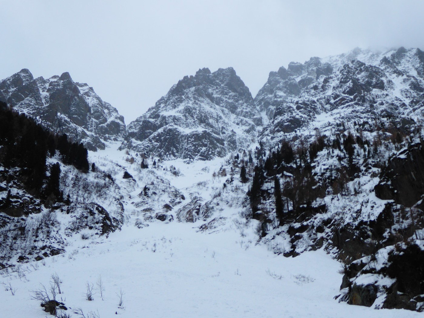 Après avoir raté le train pour le Buet, j'ai pris le bus jusqu'à Montroc. Le vallon de Bérard, sous 1800, est peu enneigé. 2-3 déchaussages nécessaires pour franchir des bras du torrent sur les plats en amont de 1650. Plus bas, la neige est dure avec pas mal de cailloux apparents. Glace et cailloux au niveau de la cascade de Bérard. On peut rechausser après jusqu'au Buet mais toujours en slalomant entre les cailloux et les zones de terres à nu.