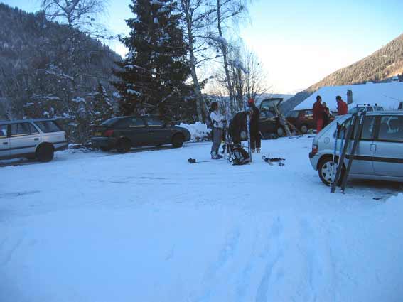 Une quinzaine de voitures, les premiers arrivés s'étant mal garés (en long). Crénom, à la Bourgeat Noire, on se gare en épi, sur les deux côtés !