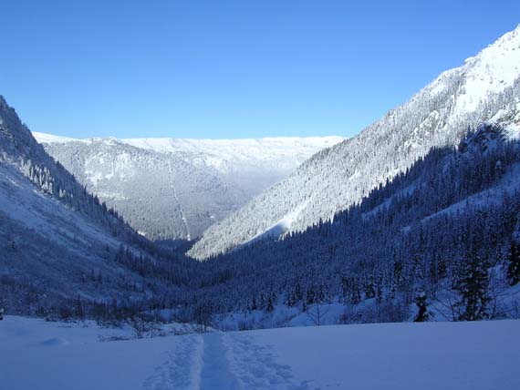 pierres apparentes sur le chemin au départ sur 1 km puis enneigement correct pour skier.descente dans une poudre légere excellente.