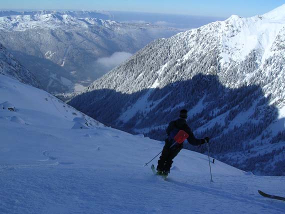 excellente poudreuse de 20 à 80cm suivant l' altitude posée sur fond de neige compacte.accumulations par endroits sous le col.