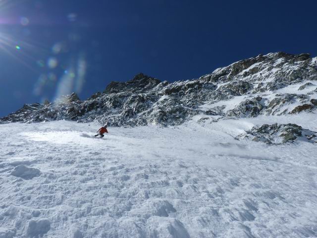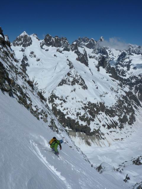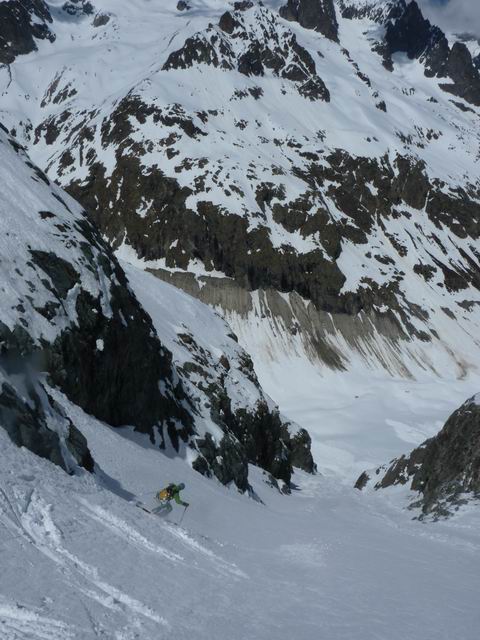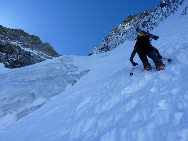 ''La pente, déjà peu raide, se couchait encore'' : non, ce n'est pas une citation du Grec, mais d'un Savoyard. Tout ça pour dire que question pente, ce couloir n'a pas grand chose à voir avec ses voisins Somme et Alvau, c'est sûr qu'il va y avoir de l'ajustement dans le secteur. N'empêche que c'est un bel objectif dans un cadre majeur