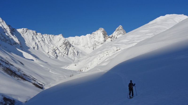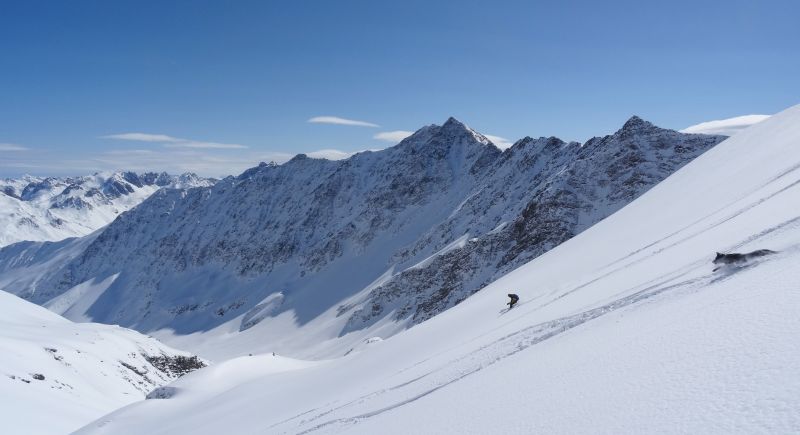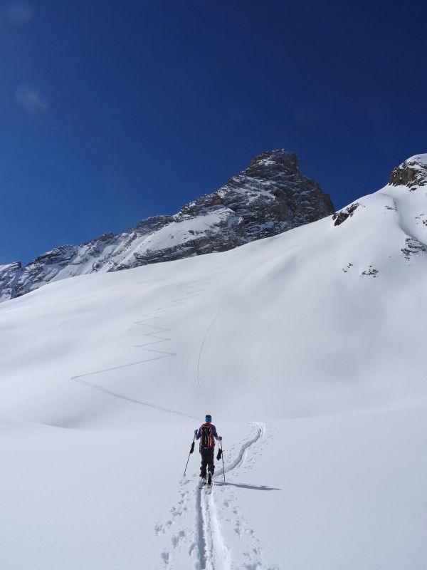 RAS, après avoir essuyé un but dans une pente voisine. Quatre skieurs ont tracé le col ce jour, avant nous.