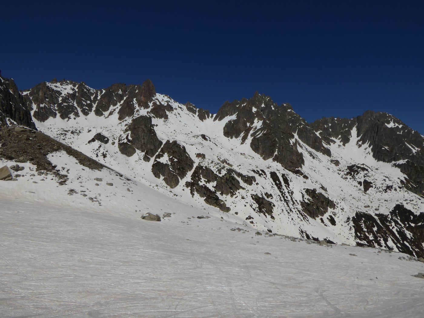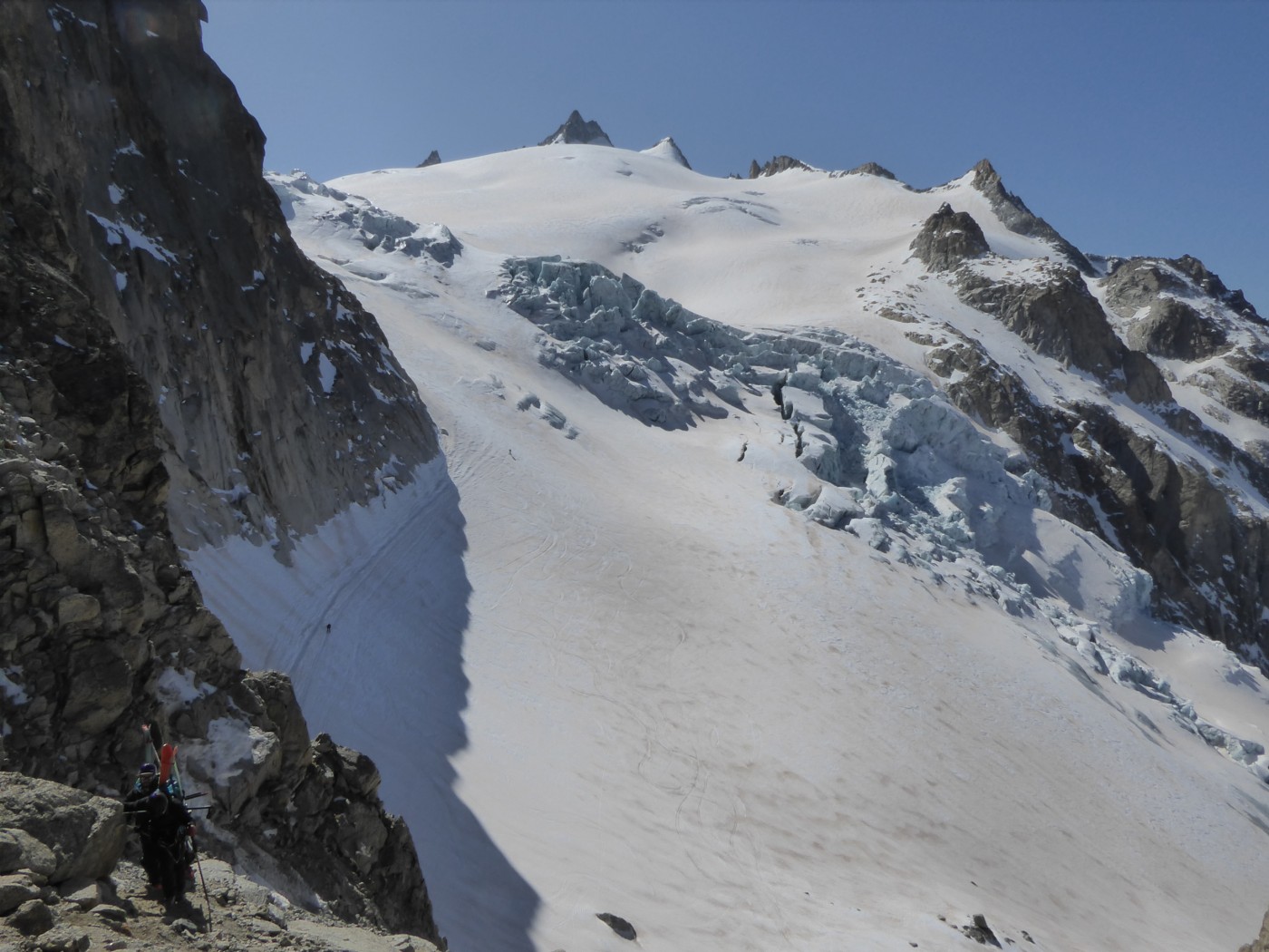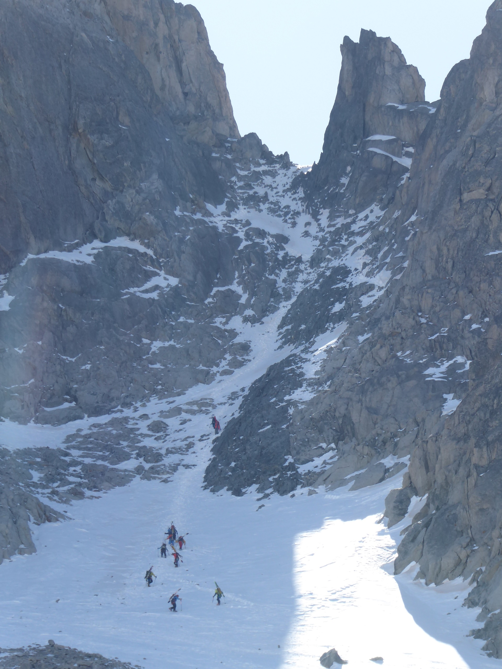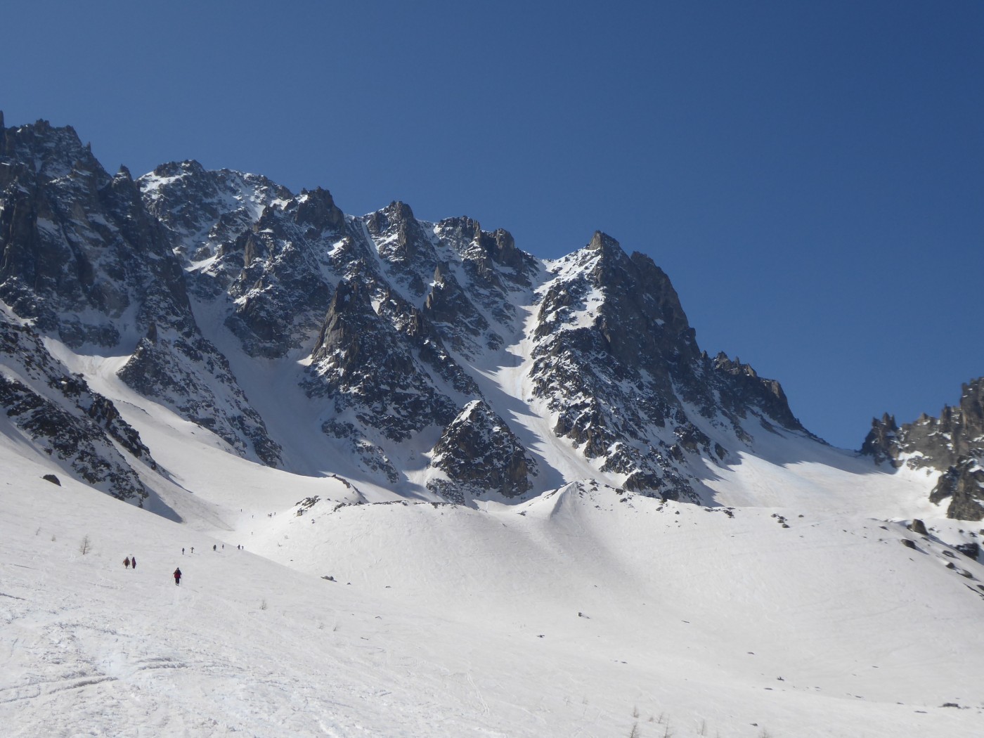 Le val d'Arpette est particulièrement fréquenté à cette période de la saison entre ceux qui l'empruntent à la montée pour gagner la cabane du Trient, ceux qui, engagés sur Chamonix-Zermatt, le descendent et ceux qui le parcourent à la journée. Personne dans les couloirs de la rive droite hormis dans le NE de la petite pointe d'Orny et ceux qui l'ont remonté (env. 12) ne semblent pas l'avoir skié. Quelques skieurs à la fenêtre d'Arpette.