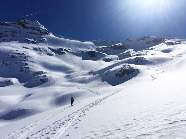 risque 1 au BRA, la gardienne nous conseille la combe du col des fours même tard dans l'après midi, le manteau est bien stabilisé.