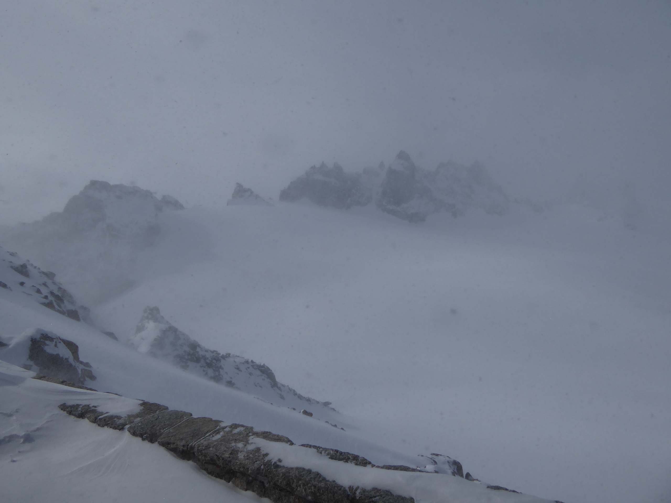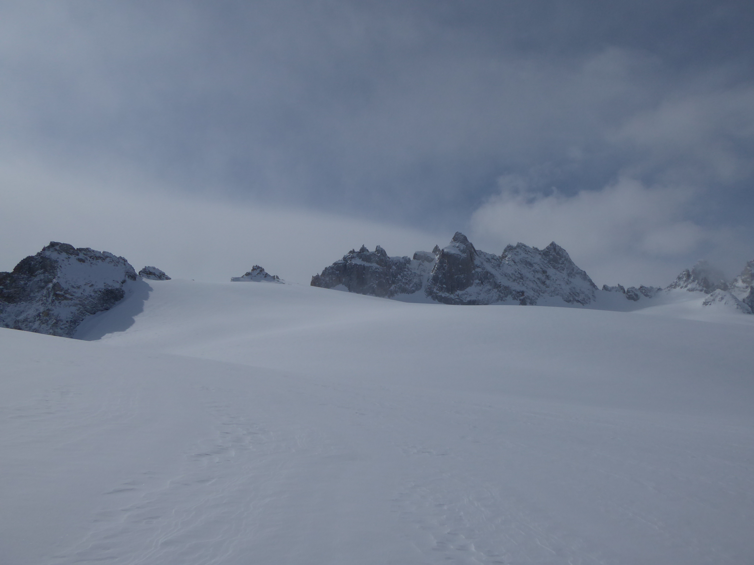 La neige tombée pendant la nuit a été travaillée par le vent. Quelques tassements se sont faits entendre pendant la montée au col. Quelques plaques au niveau du col côté Saleina.