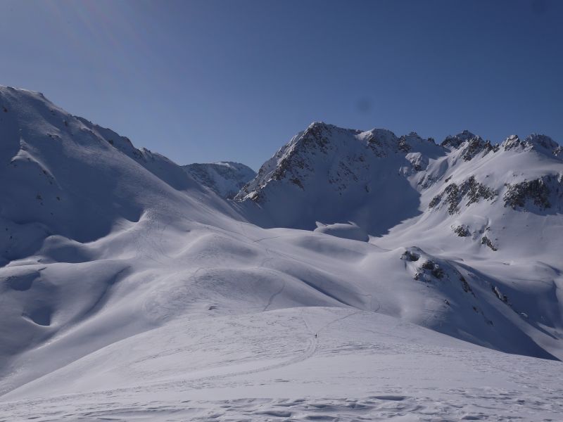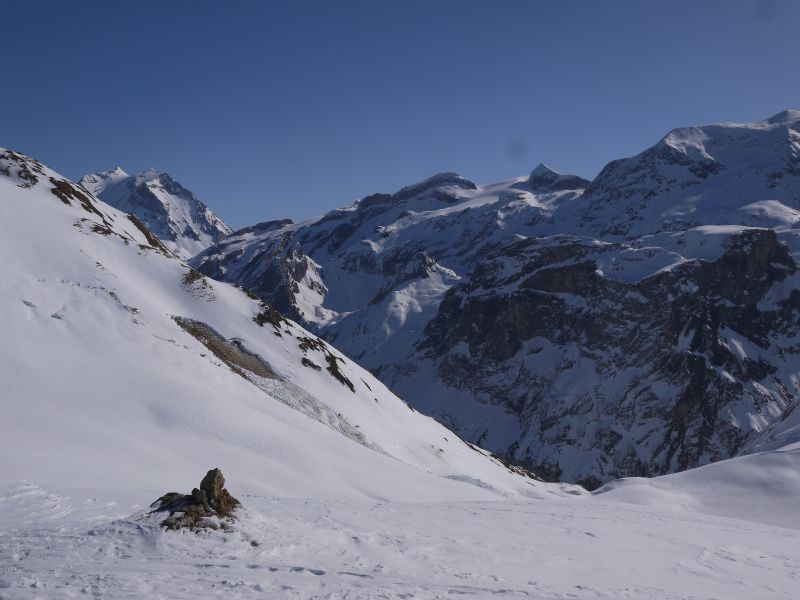 Petite sortie,histoire de partir de Courchevel (Moriond). Accès un peu long et plat pour attaquer la combe des roches. Vue splendide du col sur le vallon des Prioux côté Pralognan. Un clin d'oeil au Val (érie) puisque l'itinéraire longe la montagne de la petite Val jusqu'au col!!!