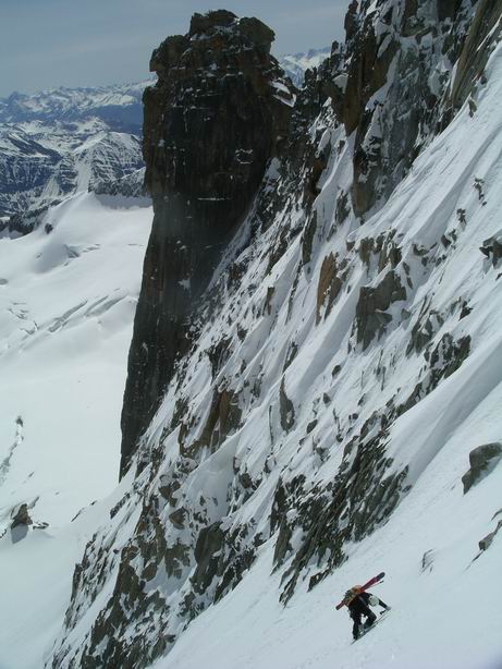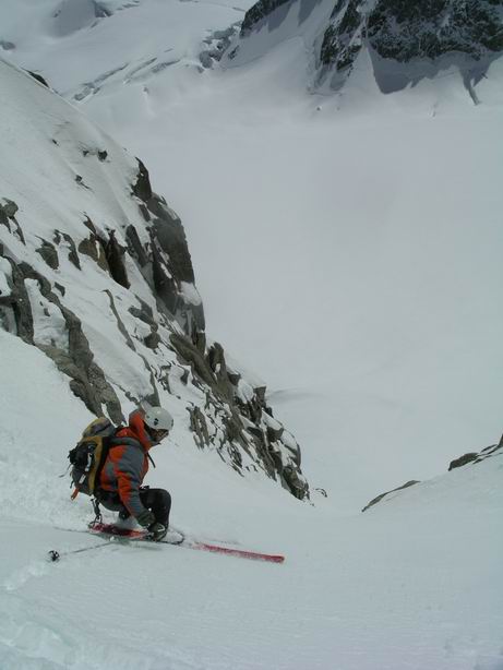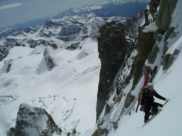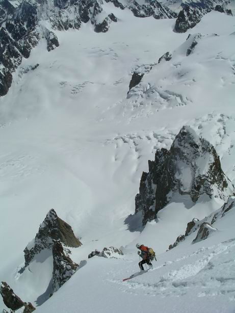 Faux départ : la benne est fermée car rafale de vent à 80km/h ! Première benne à 9h ! On monte, pas le grand beau? On y va, on verra bien, au pire, y'a la vallée blanche ? Bèche du Carabinier (4,2), sympathique entre le petit et grand Capucin, puis on accède à une face suspendue, ca rigole pas 50°/350m (5.4E4), le tout en poudre dense, grand beau, plus de vent, bref Enorme, Grandiose, Magique... donc on enquille sur la Tour Ronde !