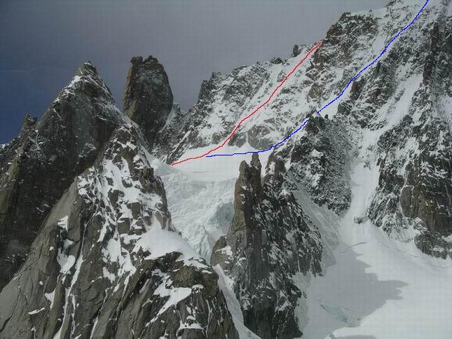Aiguille du midi > Brèche du Carabinier (entre grand et petit Capucin) > versant NE du Col du Diable (puis on enchaine avec le Gervasutti à la Tour Ronde)