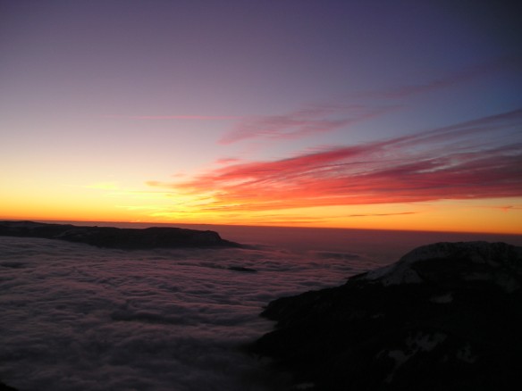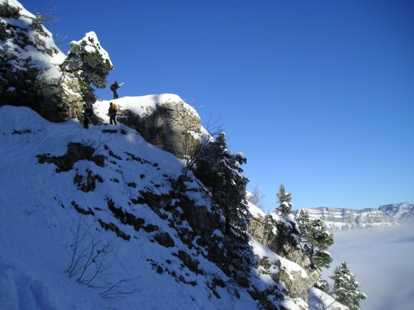 Un bon but de l'an dernier vengé: en effet lors de la sortie de JBT & Co je devais être de la partie mais arrivé au château je m'étais rendu compte que j'avais oublié mes coques à la maison! Cette fois ci malgré le départ tardif pour cause de chainage et d'inertie de groupe, ca passe et même bien (on a même eu le temps de faire chamechaude au passage pour le coucher de soleil). Une bonne petite collective pour saccager le couloir E (attendez la prochaine chute pour y aller!) et du bon ski jusqu'à la voiture... L'enneigement n'a rien à voir avec celui du plateau matheysin.