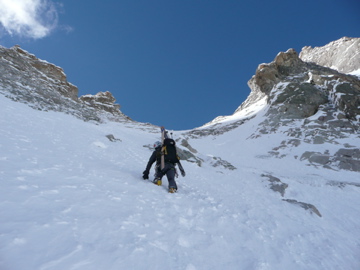 D6,mais en contournant par la droite les séracs au bas de la face.