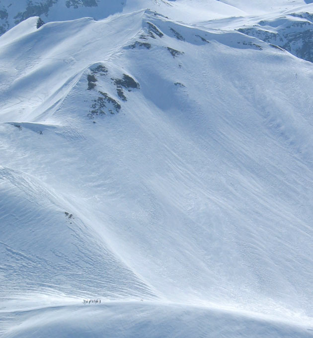 neige transformée, déjà trop profonde en bas à l'heure de notre descente (vers 12-13h).