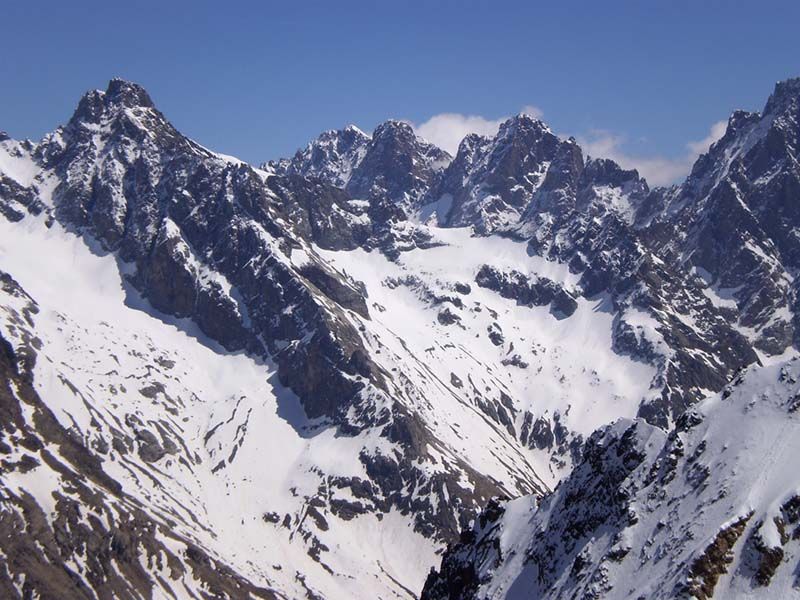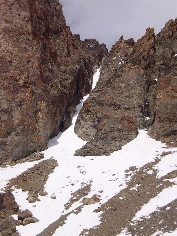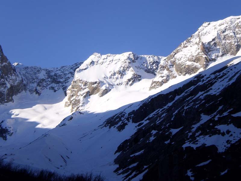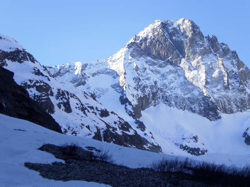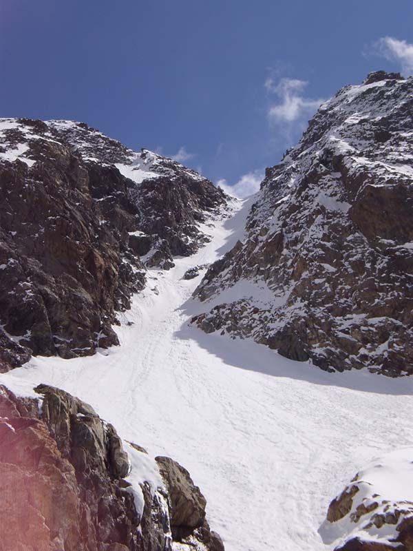 Très belle course, qui n'a pas à rougir devant l'Encoula de Petit Pierre voisin. Malheureusement, les pentes sommitales se déneigent vite. Je n'ai chaussé les skis que vers 3150, car j'ai gardé les crampons pour descendre (piolet utile) et il y avait trois passages rocheux. En outre, la neige trop molle incitait à la prudence... La traversée exposée entre 2400 et 2500 n'est délicate à la montée que sur 200 m au début ; ensuite, c'est très plat et on débouche gentiment dans le vallon vers 2500. Le couloir raide d'accès au glacier de Petit Pierre a l'air en conditions (sans doute un peu de dur mouvementé en-dessous), mais il est surmonté par une belle corniche et la fin en est rendue encore plus raide. Le couloir sud de la Grande Aiguille de la Bérarde a l'air bon, bien qu'assez étroit. Le haut ne prend pas le soleil avant midi et sa rive droite repasse à l'ombre vers 14h.