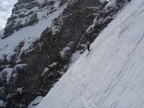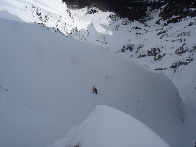 Les conditions de neige était délicate dans les zones raides, poudre lourde sur fond béton.