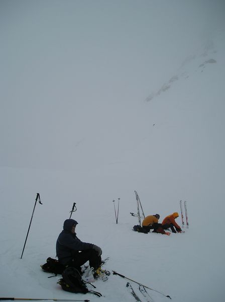 Partis pour fureter vers les Rochers des Pâtres, on déchante vite au vu des nombreux départs de plaques : une "petite" au bas des Pâtres, une plus grosse à droite de ceux-ci, rien des Pâtres eux-mêmes ; le brouillard s'en est mêlé nous faisant définitivement renoncer. On est monté du coup au col du Villonet. 2 gars ayant fait le rectiligne du Vallorin nous ont rejoint. Col de la Colombière, du Merlet et de la Lavoire faits.