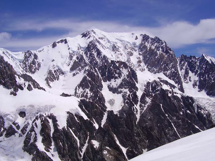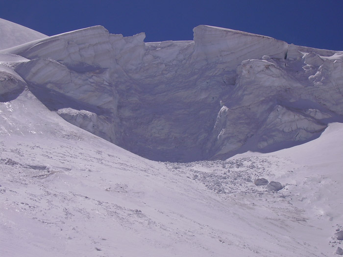 Je signale qu'un vent d'ouest assez soutenu en altitude a provoqué un peu de chasse-neige avec la neige récente et a pu favoriser la création de petites plaques, notamment dans la face O de la Lex Blanche, moins dans la NO de l'aiguille de Tré-la-Tête, plus abritée. À propos de cette dernière, un gros paquet de séracs s'est effondré au bas de la face, provoquant une belle coulée. Nombreuses autres coulées dans toutes ces faces ouest. Corniches vers l'ouest sur l'arête Tré-la-Tête -> dôme de neige, en dépit du vent de SO qui a soufflé ces derniers temps.