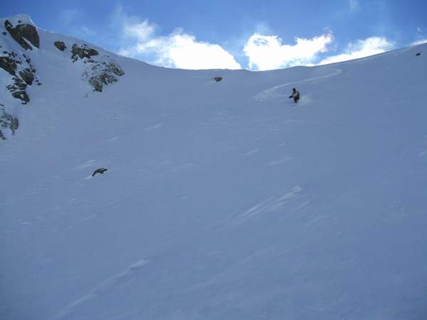 Une bonne idée que ce versant est de Belledonne, et, comme à chaque fois, jamais déçu. Du très bon ski tout du long. Une seule trace que nous avons suivi jusqu'à 2200m, puis Mick a fait la bête pour tracer dans la profonde jusqu'au sommet.