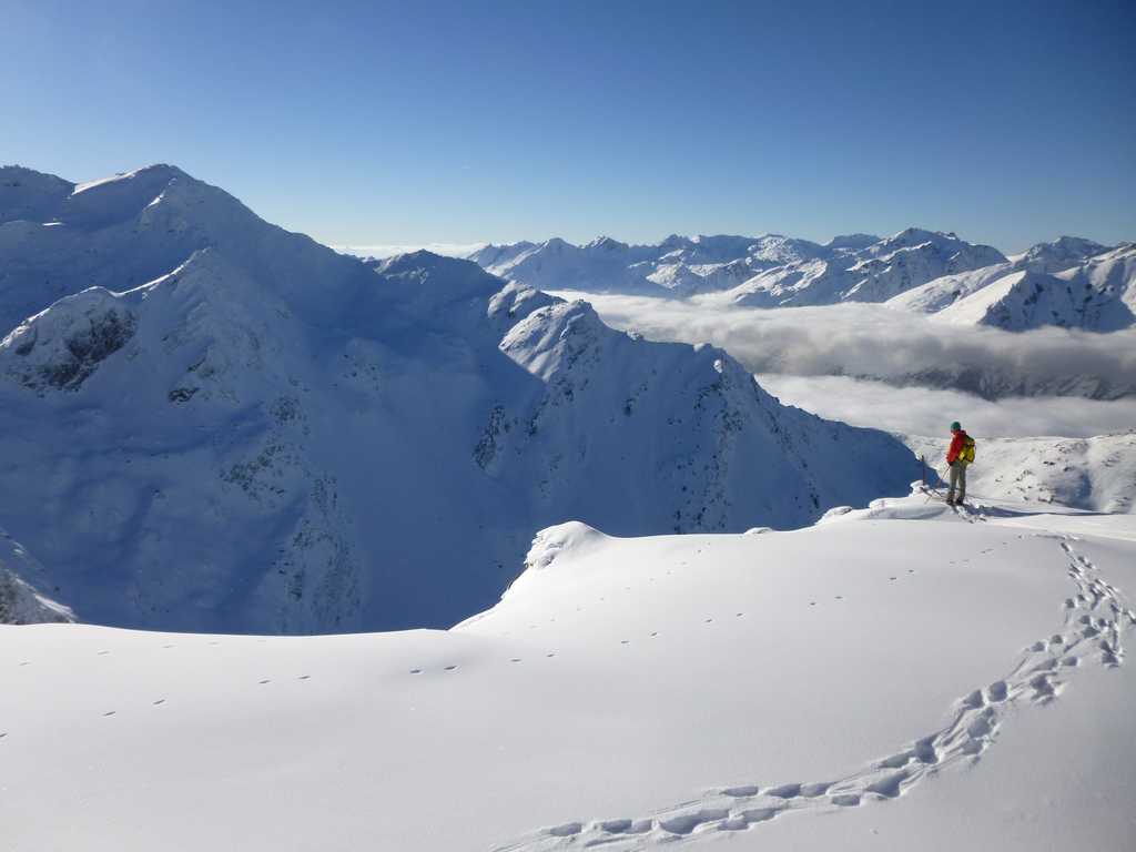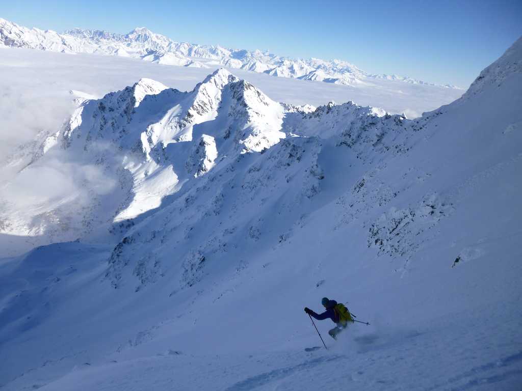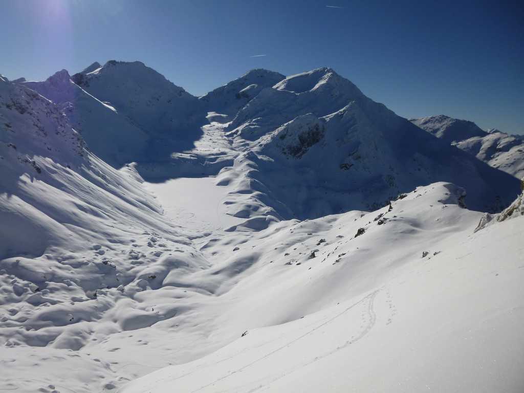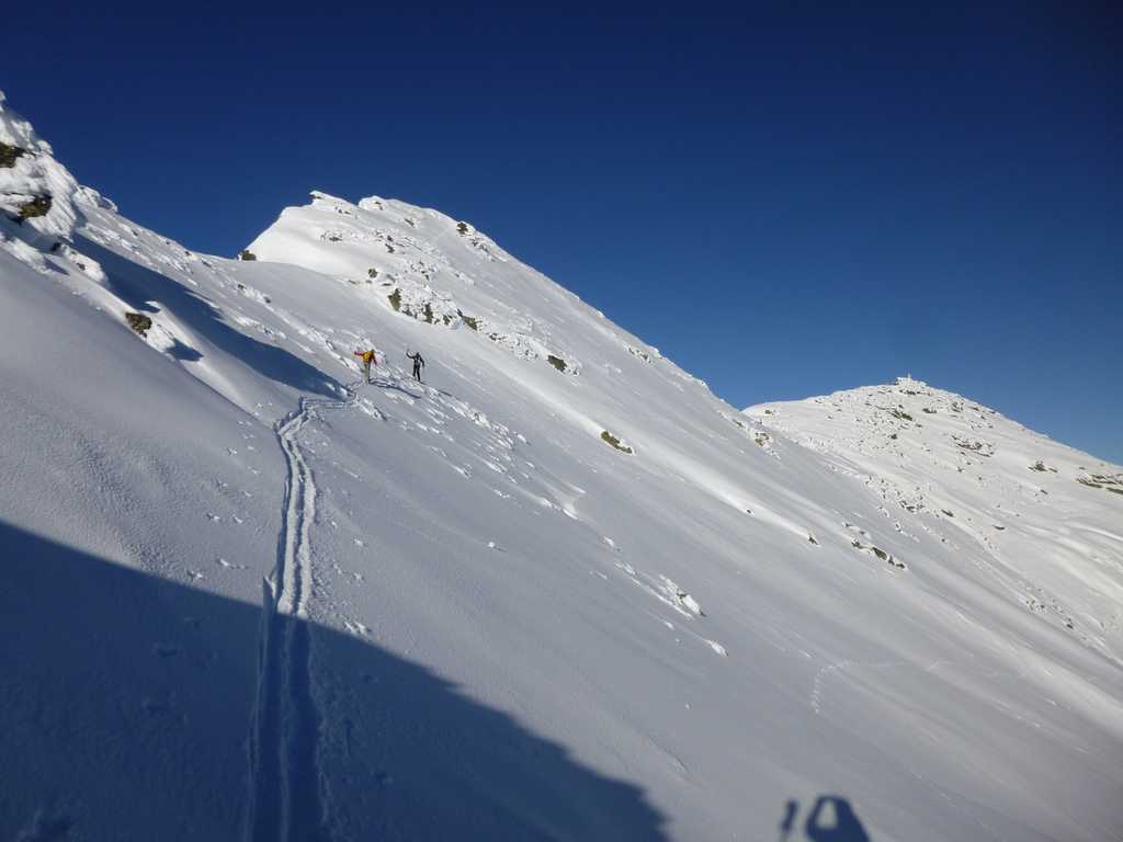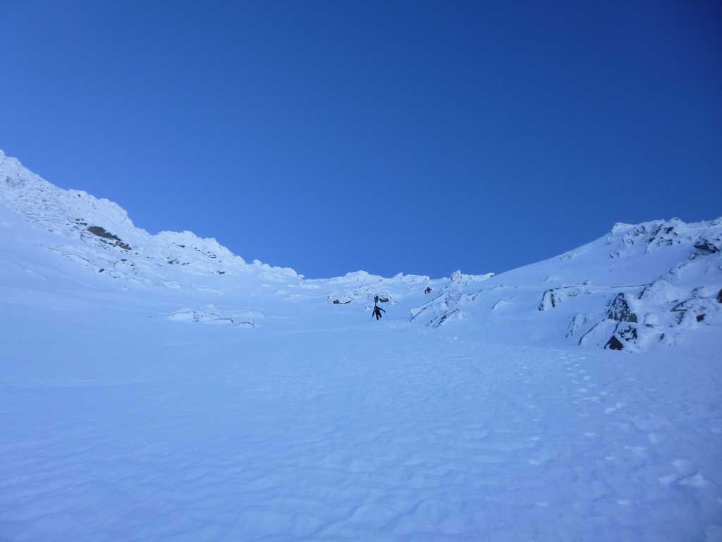 On aura eu un peu tous les types de neige : poudre, soufflée, croutée dans la face N du Colmet, transfo, croutée, soufflée, poudre dans le couloir ouest de la Pougnenta. Glogalement le manteau nous a semblé assez sain aussi bien côté nord que ouest.