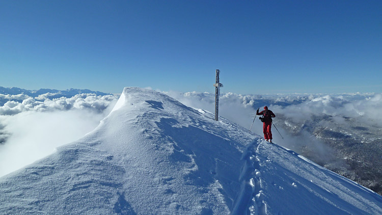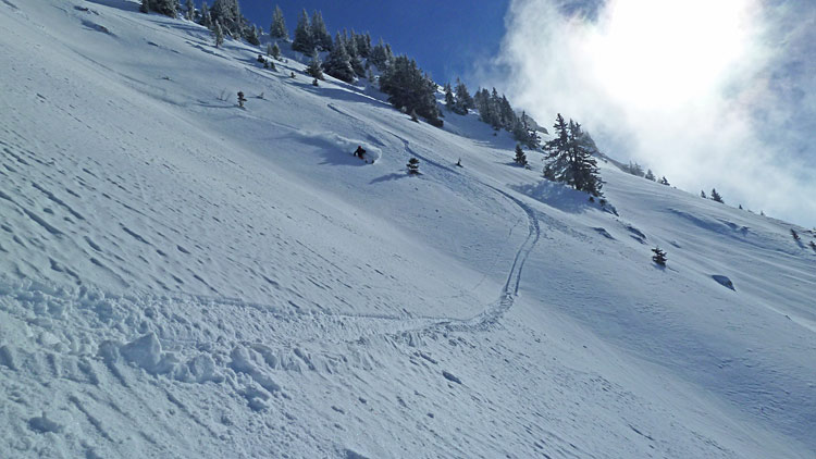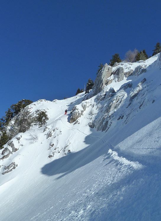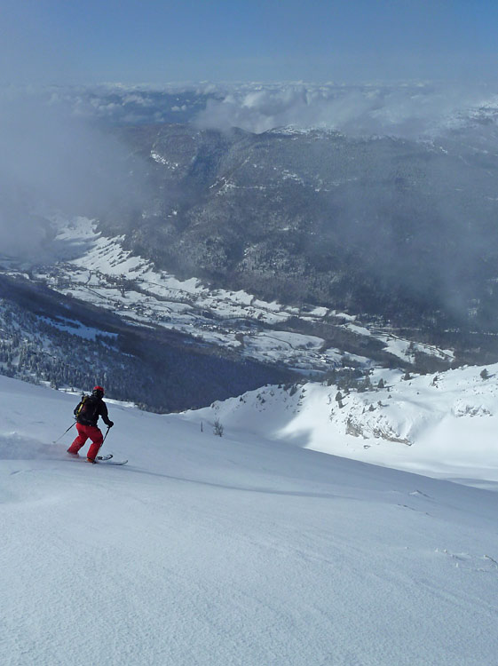 Privilège rare de skier la Ouest du Colombier vierge, puis on remet les peaux pour prendre la trace jusqu'à la Bade (merci) et finir par une sympathique descente du versant ouest en compagnie des compétiteurs Danny (Juhlen) et Guy.
