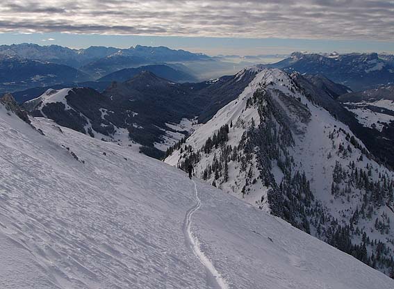 Un joli circuit qui permet de ne pas recouper sa trace sur 1500m. De la bonne neige sur toutes les descentes. Le seul bémol est le retour depuis le pied de l'itinéraire du roc de Poyez par cette piste qui prend un peu de temps et la fin pas très skiante. Les Bauges sont bien enneigées pour l'époque et on ne touche pas. Températures hivernales. Faces nord de la Bade et du Colombier déjà tracées ainsi que la ouest. En revanche, le couloir de Poyez était encore vierge de trace. Très belle descente avec 1000m sur la même ligne.