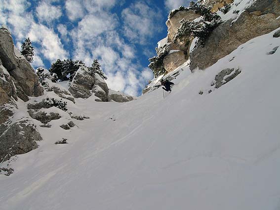 Montée comme C7 (sans la Bade) au Colombier puis face nord du Colombier et remontée à droite au roc de Poyez. Descente par C4 jusqu'à 1000m. Rephoquage et retour par une piste forestière (pénible, dénivelant peu) sur 300m de remontée pour basculer versant sud jusqu'à AIllon. D+/D- : 1550m