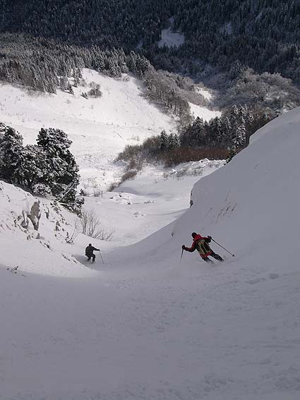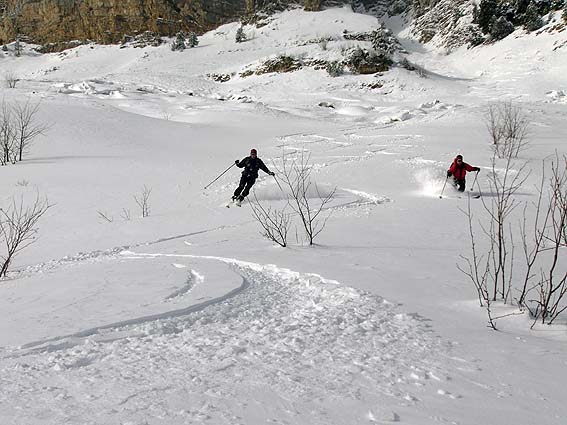 Neige restée poudreuse en toutes orientations (sauf plein sud) au-dessus de 1300m.