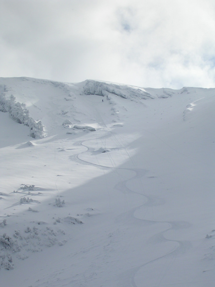 Quelques purges superficielles lors de la descente du Colombier N (poudre sur croûtée) et du couloir E de Poyez.