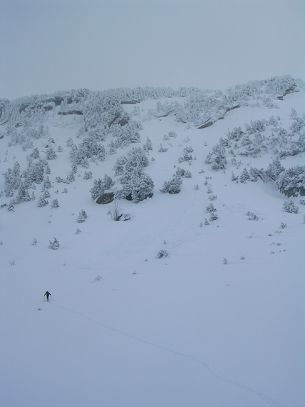 Aujourd'hui, on est passé par le Ravin Rosset jusqu'à 1500 m puis on a basculé dans celui des Châtres, pour enfin couper au mieux en forêt (remontée pour sortir du talweg) à partir de 1200m.