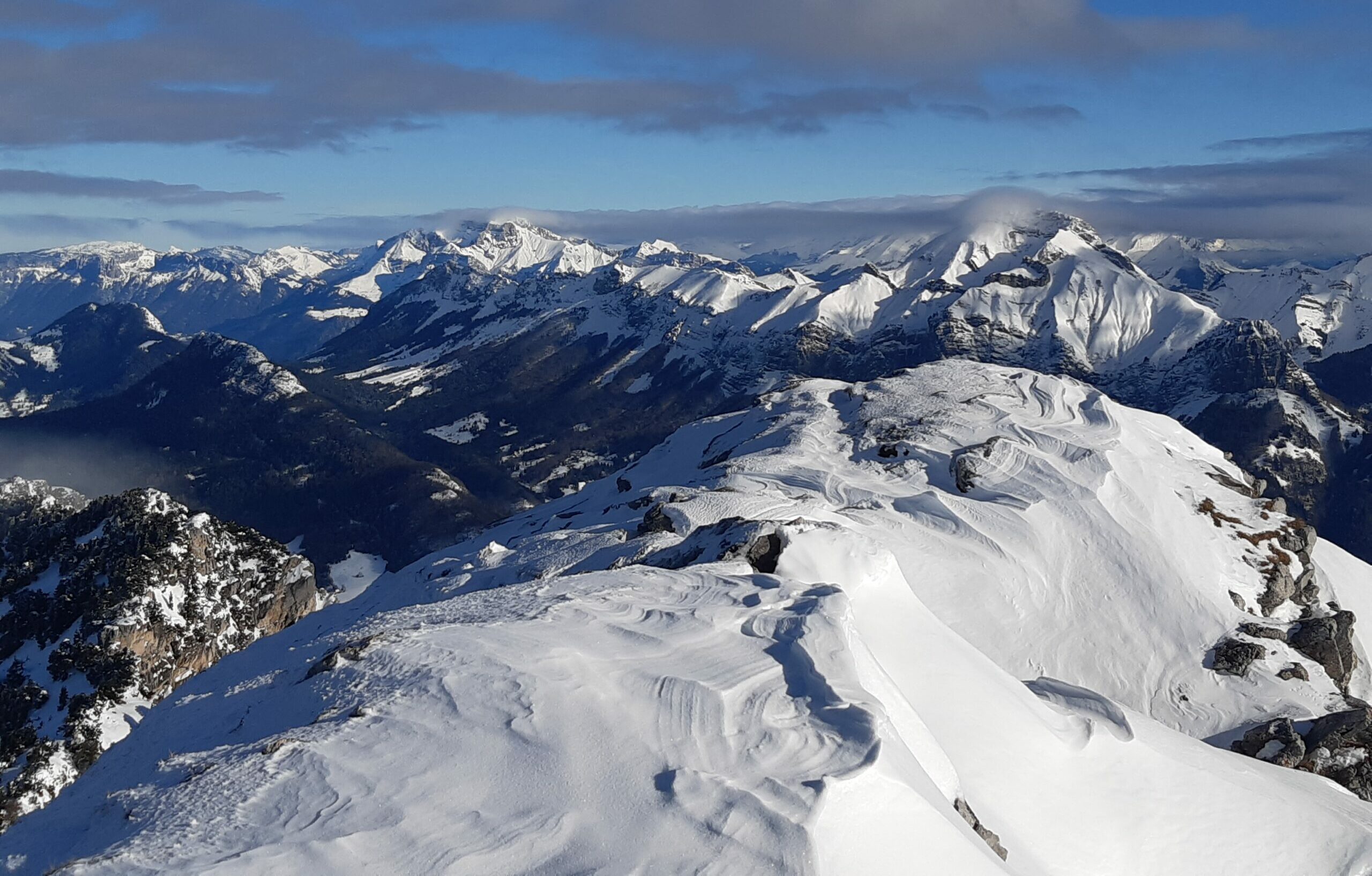 Sortie express, le dernier créneau avant le redoux qui vient clôturer la séquence hivernale de fin novembre. Croisé quelques personnes au parking et trois au sommet. Face ouest peu voire pas tracée.